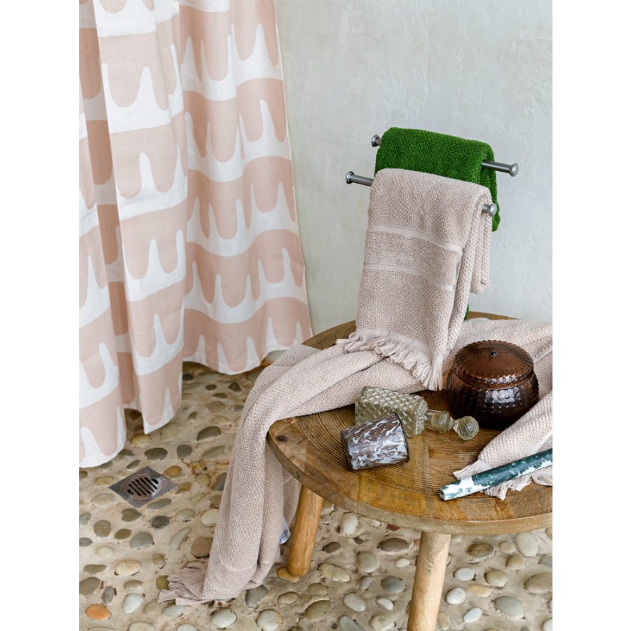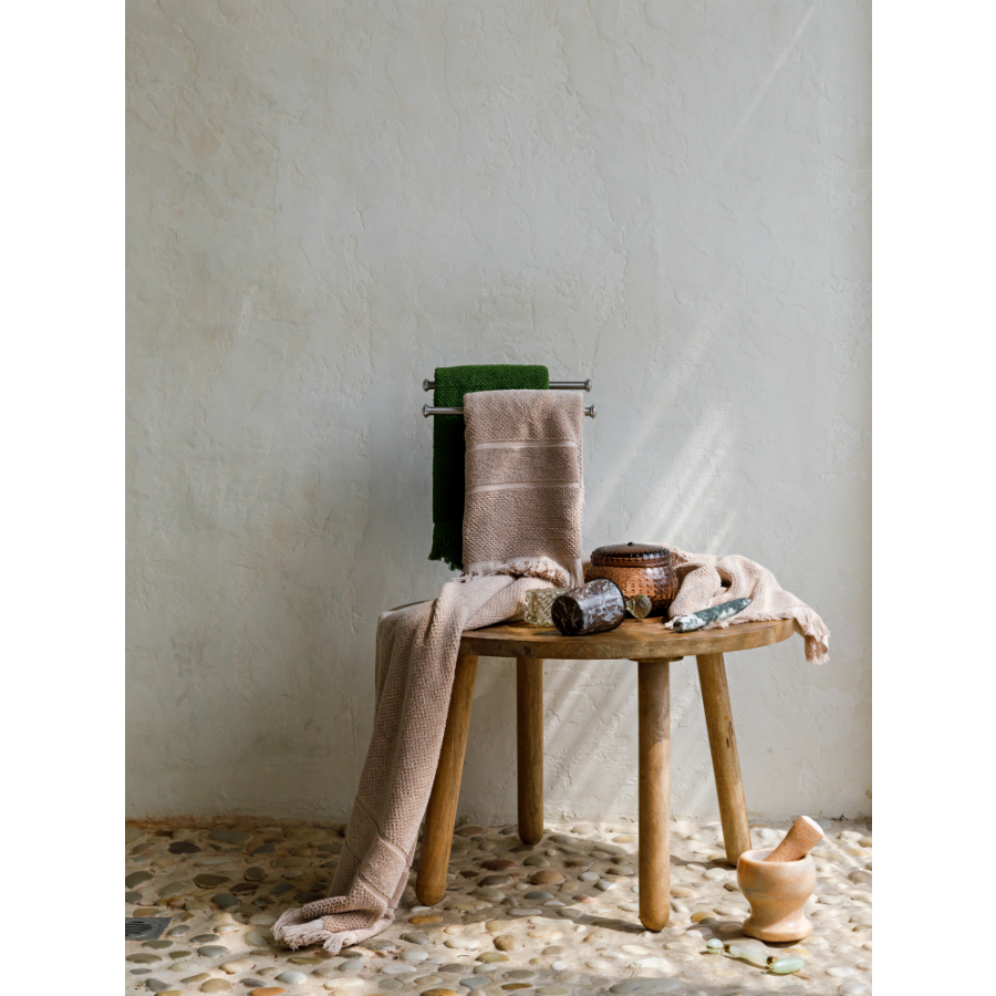 Полотенце для рук линии Essential украшено фактурным узором и мягкой бахромой в тон. За счет такого дизайна аксессуар органично подчеркнет любой интерьер ванной комнаты. Изделие станет отличной находкой для тех, кто любит качественные банные принадлежности из натуральных тканей. Ровная прочная пряжа изготавливается из лучших сортов длинноволокнистого хлопка методом тщательного прочесывания материала, что значительно улучшает ее качественные характеристики. Полотенце быстро впитывает влагу, оставляя приятное ощущение свежести и чистоты. Изделие отличается особенной износостойкостью: оно хорошо держит форму и сохраняет впитывающие свойства на протяжении долгого времени. Плотность ткани - 612GSM. Размер 50х90 ! Максимальная температура стирки 40° C ! Гладить при максимальной температуре 110° C ! Барабанная сушка запрещена ! Не отбеливать ! Сухая чистка запрещена