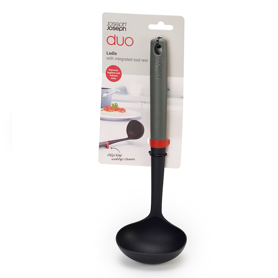 Половник подойдет для супов, бульонов, компотов и других жидких блюд. Ручка инструмента оснащена специальной подножкой, чтобы половник держался на весу, благодаря чему испачканная часть не коснётся рабочей поверхности. Входит в серию кухонных приборов DUO, разработанную для поддержания максимального порядка во время приготовления блюд. Особенности и преимущества: - Гигиеничная и аккуратная эксплуатация - Нейлон выдерживает температуры до 200°C - Подходит для посуды с антипригарным покрытием - Можно мыть в посудомоечной машине DUO — новая линейка стильных и эргономичных аксессуаров для кухни от Joseph Joseph. Дизайнеры бренда выявили основные проблемы, возникающие в процессе готовки, и создали уникальную коллекцию DUO для привлечения широкого круга покупателей. Они разработали облегчённый дизайн бестселлеров Joseph Joseph, которые соответствуют самым высоким показателям по практичности и функциональности. Все аксессуары выполнены из высококачественных и прочных материалов и станут фаворитами на любой кухне.