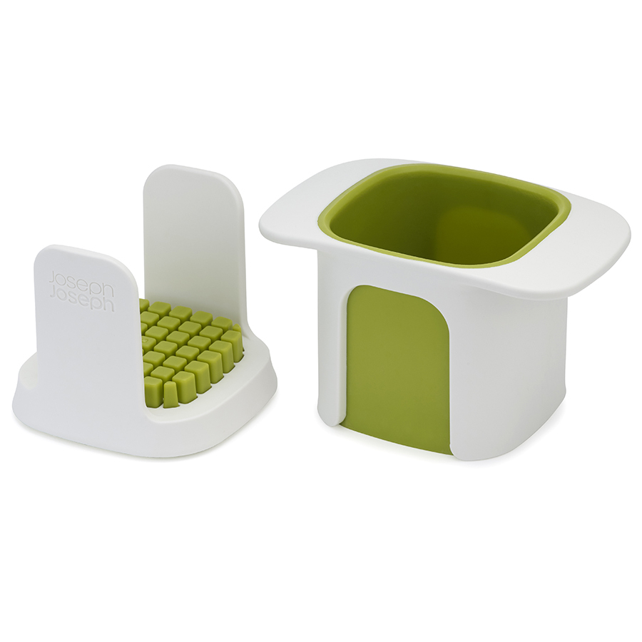 Измельчитель с острыми лезвиями из нержавеющей стали имеет емкость для сбора нарезанных кусочков. Он легко разбирается для мытья. Материал не содержит Бисфенол-А.