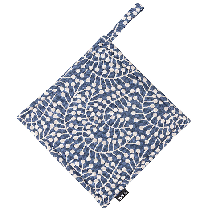 Прихватка темно-синего цвета с принтом Спелая Смородина из коллекции Scandinavian touch – практичный и полезный кухонный аксессуар. Рисунок со стилизованными ягодами смородины и округлыми линиями веточек разработан одним из ведущих финских дизайнерских агентств. Изделие хорошо сочетается с другим кухонным текстилем из этой же коллекции, оно станет ярким акцентом в интерьере кухни и гармонично впишется в любой современный стиль. Прихватка не нагревается и хорошо защищает от контакта с горячими поверхностями. Есть удобная петелька для подвешивания.