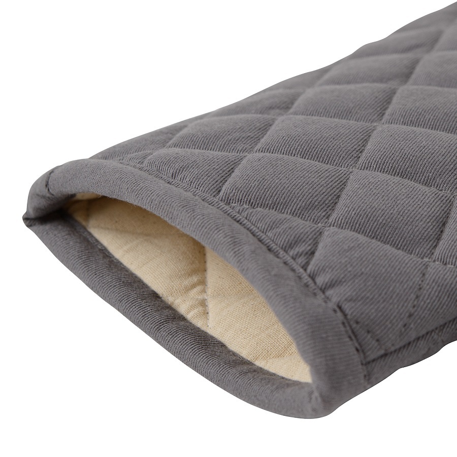 Прихватка-варежка из хлопка серого цвета из коллекции Essential – универсальный кухонный аксессуар. Изделие органично впишется в любой современный интерьер. Не нагревается даже при длительном контакте с горячими поверхностями. Внешняя и внутренняя части выполнены из 100% гипоаллергенного хлопка. Наполнитель: полиэстер. Есть удобная петелька для подвешивания.