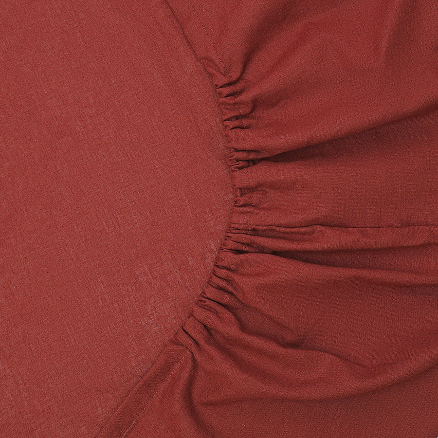 Простыня на резинке изо льна и хлопка цвета копченой паприки из коллекции Essential – стильное постельное белье высочайшего качества, которое подарит ощущение комфорта во время сна и привнесет в интерьер спальни природную элегантность.