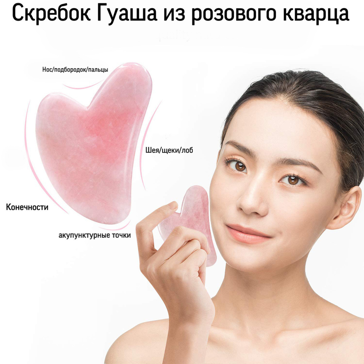 Набор состоит из двух незаменимых массажеров для Вашего лица, которые изготовлены из натурального розового кварца: двусторонний роллер и скребок Гуаша.