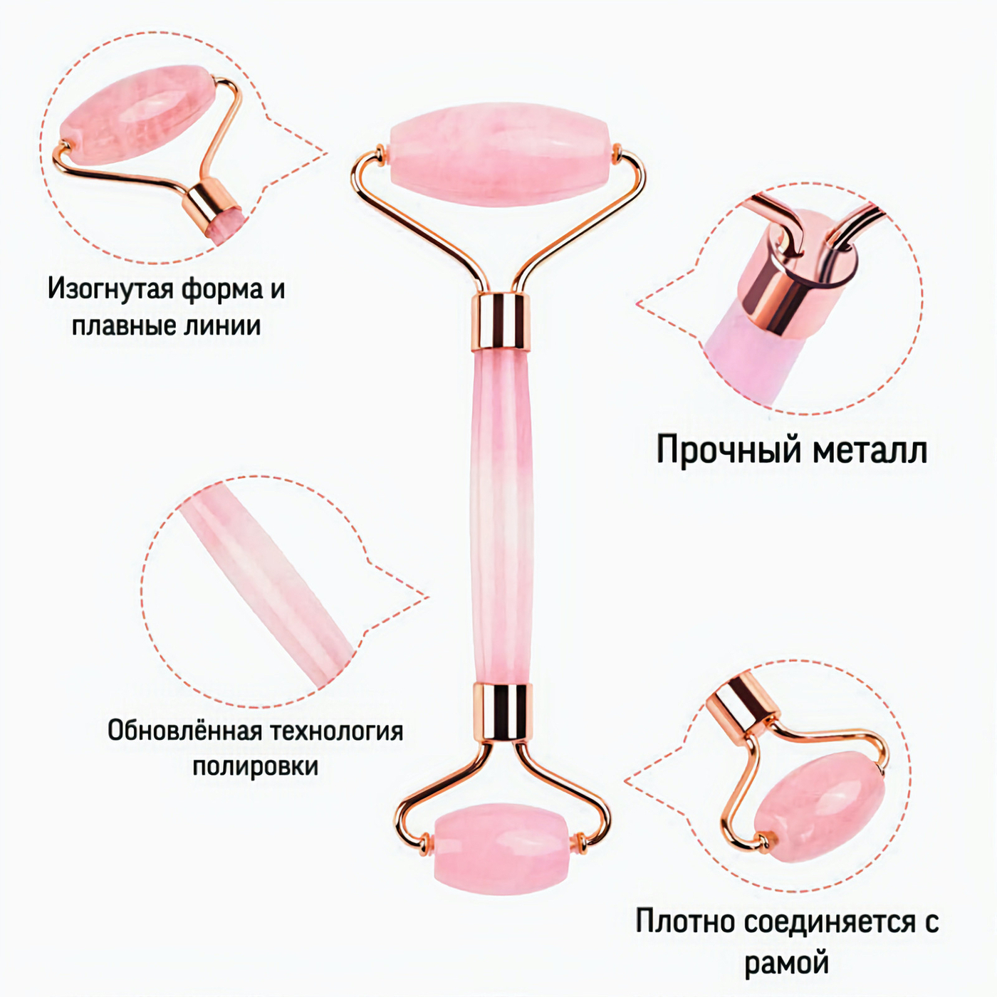 Примечание: возможны бороздки на поверхности валиков. Природный розовый кварц имеет естественные полости, которые проявляются при обработке и шлифовке камня. Безопасно для кожи.