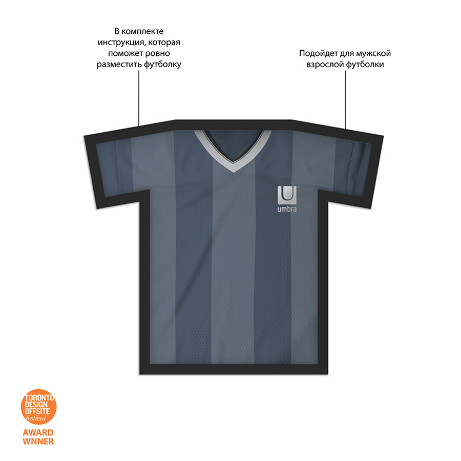 Рамка для футболки T-frame – прекрасный подарок настоящему фанату. Идея создания настенного аксессуара принадлежит Caleb Ferris и Prakhar Mehrotra. Изделие отлично подходит для демонстрации хоккейных, бейсбольных и регбийных футболок размером до XXL. При изготовлении аксессуара мастера используют высококачественный полистирол, который хорошо держит форму и не желтеет от прямого воздействия ультрафиолета. В комплект входят специальные крепежи для настенного монтажа. Размер рамки: 73х62х3 см.