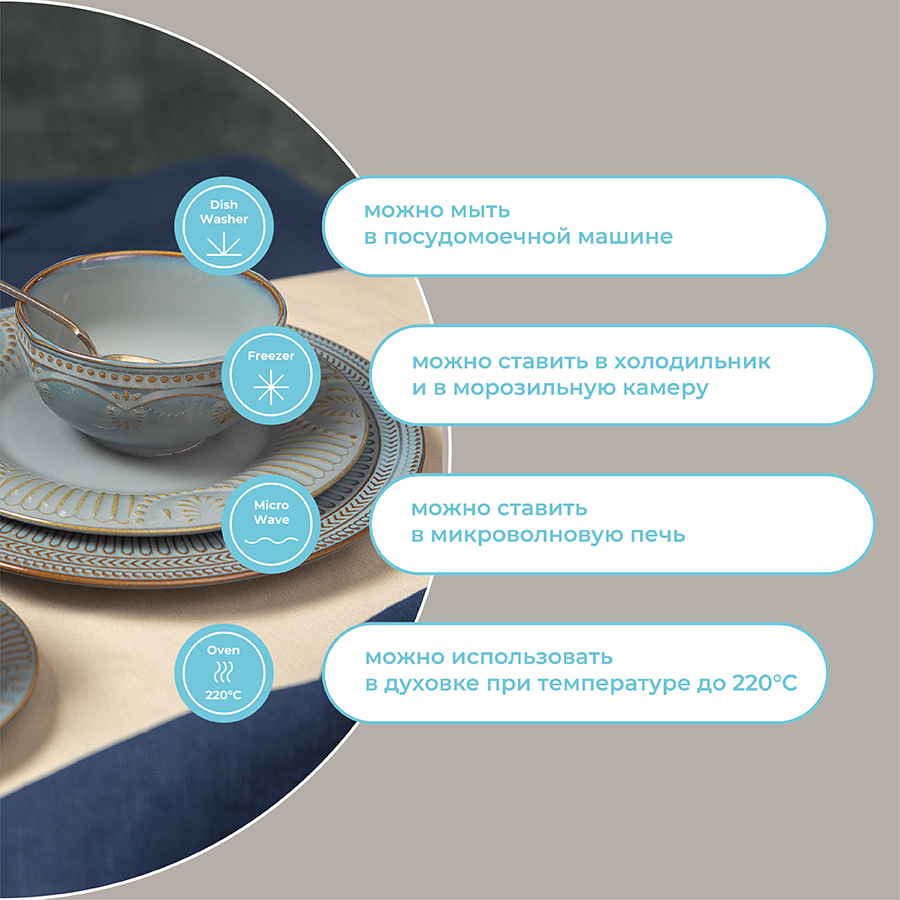 Чистое сырье высочайшего качества и собственная формула глазуровки с обжигом при температуре 1250 °C делают изделия из фарфора особо прочными, устойчивыми к растрескиванию и появлению сколов. Глазурь и декор не тускнеют со временем, сохраняя первоначальный цвет и блеск. Наши продукты прошли испытания на отсутствие в составе свинца и кадмия в соответствии со стандартными тестами FDA.