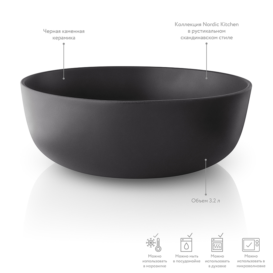 Черный салатник в скандинавском стиле дополнит современный интерьер кухни или столовой, станет частью элегантной сервировки.