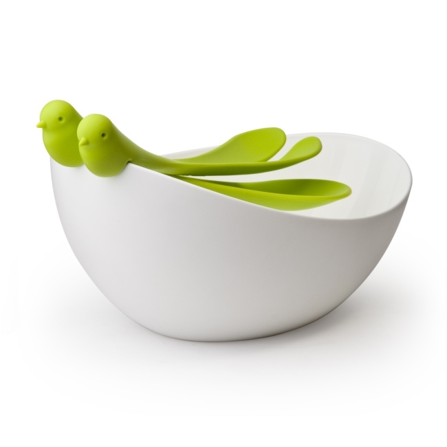 Необыкновенно красивая салатная миска с сервировочными ложками приближает нас к природе, в ней так и хочется приготовить аппетитный, полезный, свежий салат!