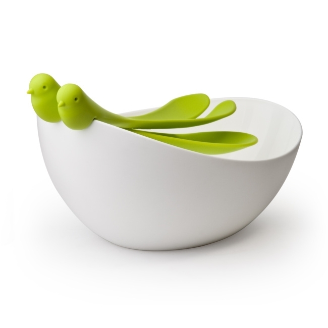 Необыкновенно красивая салатная миска с сервировочными ложками приближает нас к природе, в ней так и хочется приготовить аппетитный, полезный, свежий салат! Миску уже оценили любители салатов из многих стран, а также она попала в десятку самых стильных, дизайнерских сервировочных мисок по мнению журнала "1 Design per day".