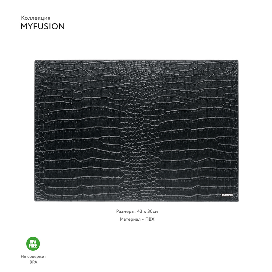 Двусторонняя подстановочная алфетка MyFusion — элегантный и необычный аксессуар из плотного синтетического материала, который не впитывает жидкость и жир и легко моется. С одной стороны изделие украшено логотипом Guzzini. Такая салфетка станет изысканным завершающим штрихом к минималистичному интерьеру, в том числе в стиле хай-тек.
