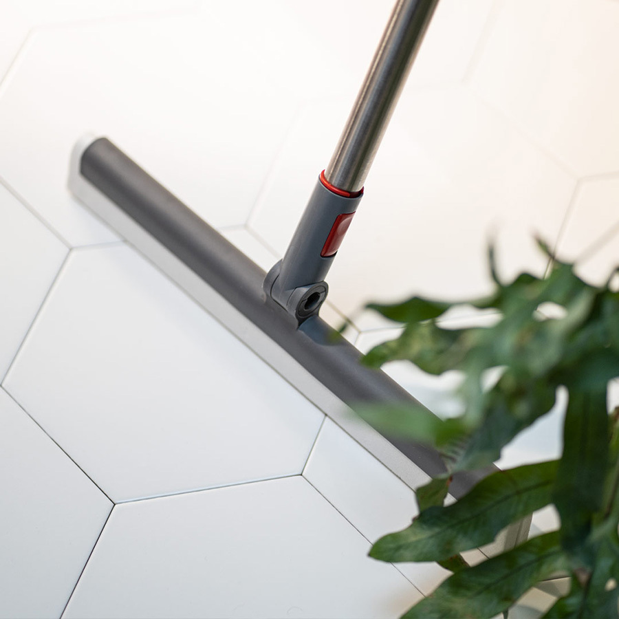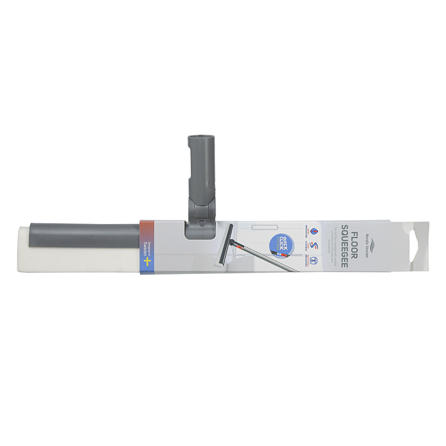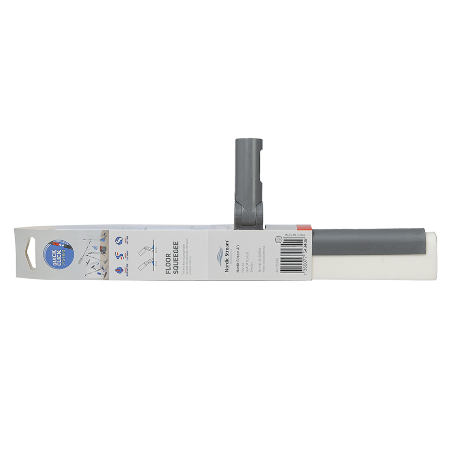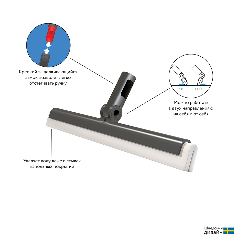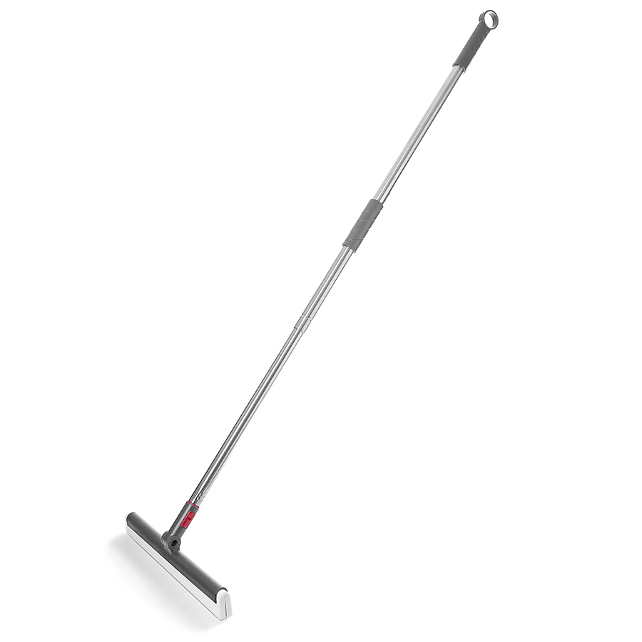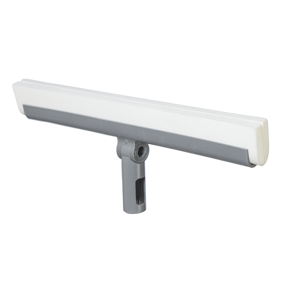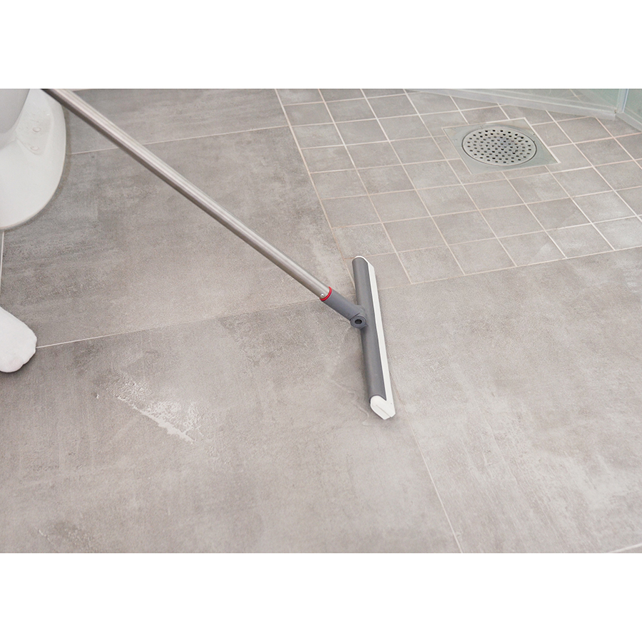 Швабра-скребок для пола состоит из прочного пластикового корпуса, в основе которого зафиксирован сквидж для воды. Он представлен в виде двойной полоски, выполненной из плотного износостойкого материала. Швабра отлично удаляет воду и моющие средства даже в стыках напольных покрытий. Швабра идеально подходит для уборки в ванной комнате, на кухне, на террасе или у бассейна. Телескопическая ручка приобретается отдельно. Скребок легко крепится к ней с помощью защелкивающегося механизма.
