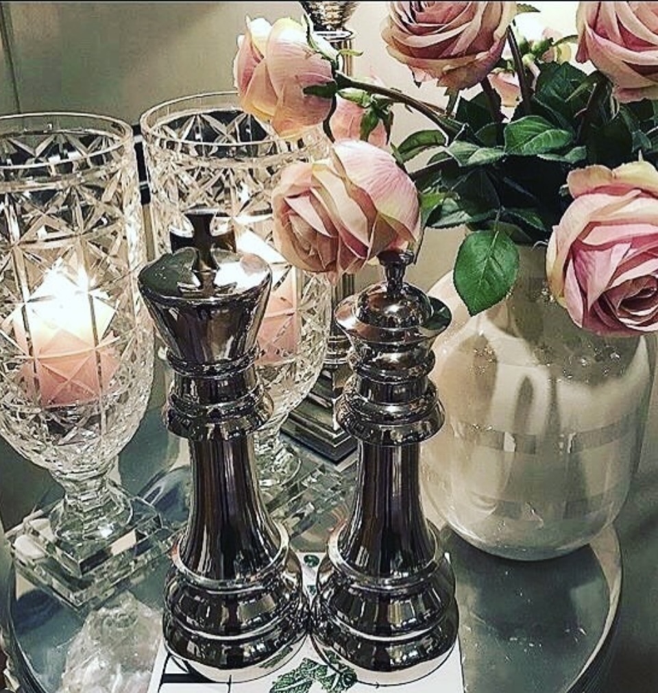 Шахматные фигуры короля и королевы Chess King & Queen выполнены из полированного алюминия.