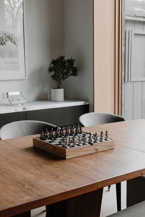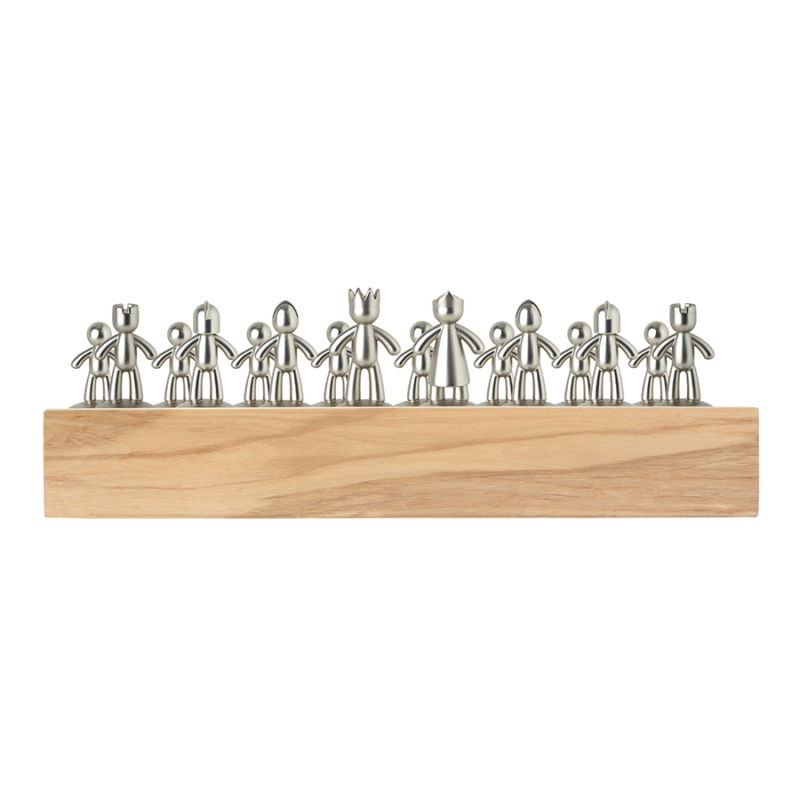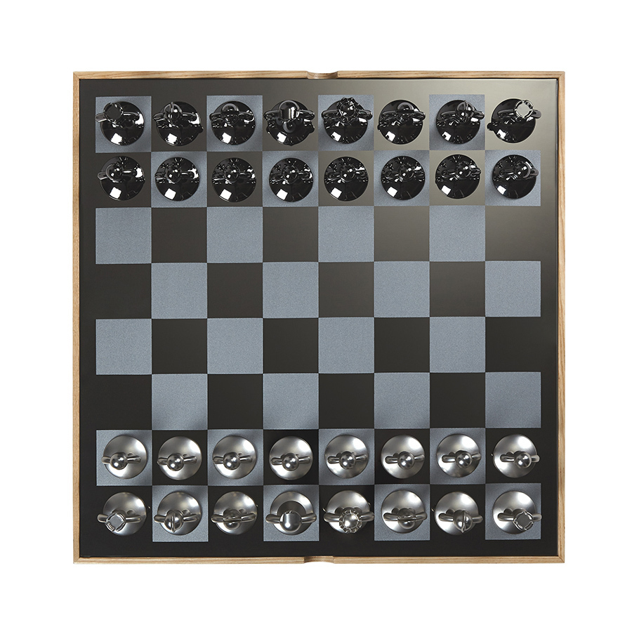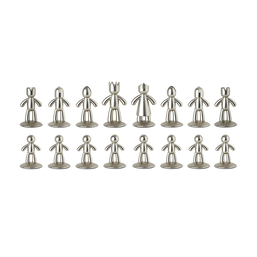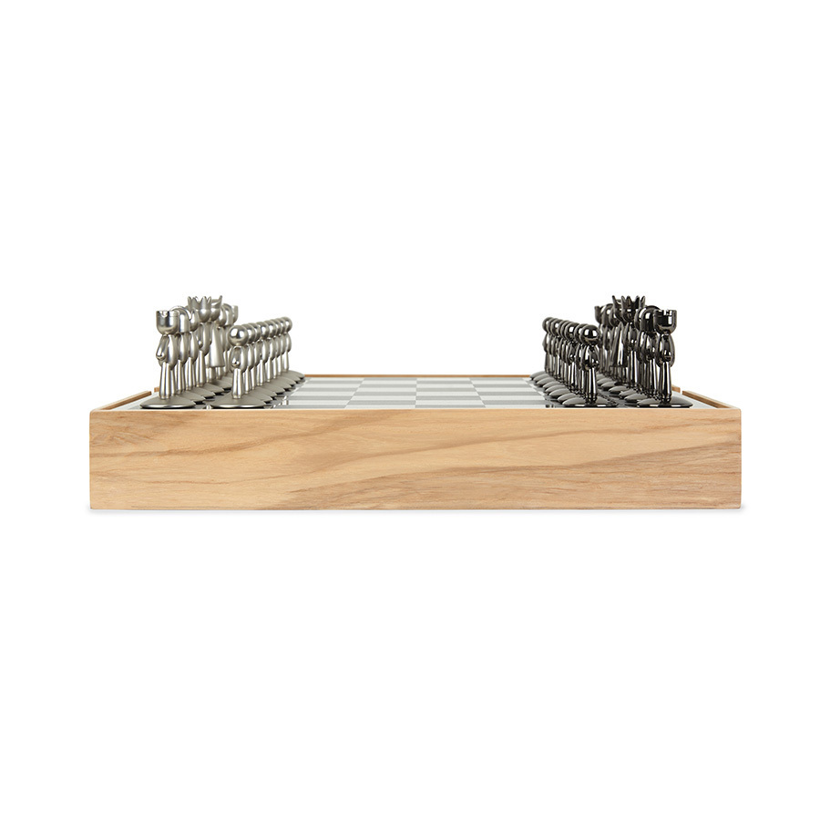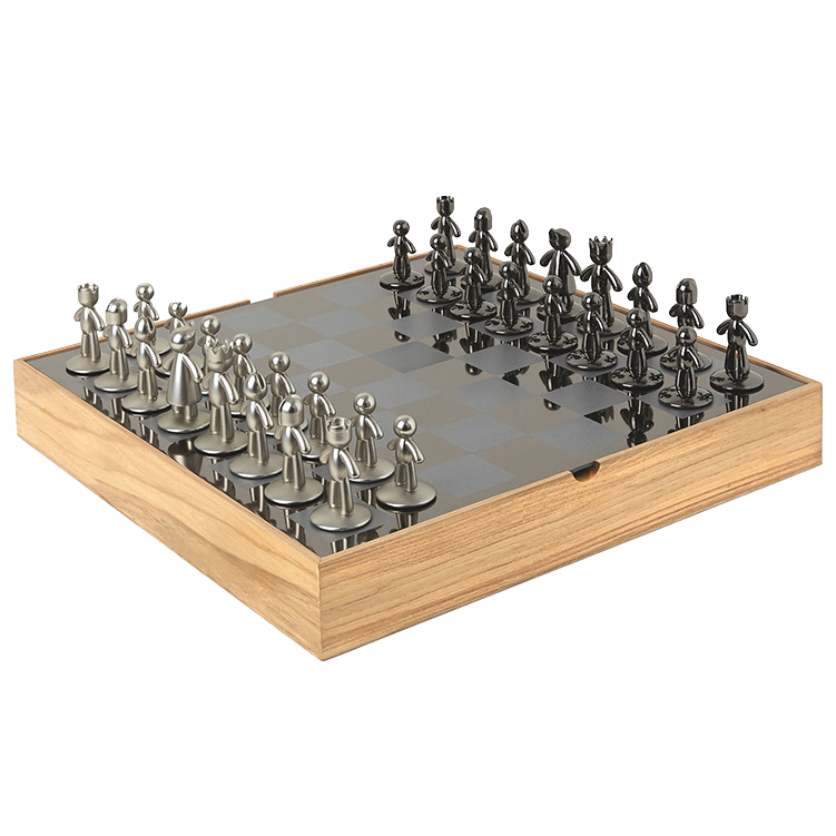 Набор из шахматной доски и необычных шахмат в виде культовых человечков Buddy. Шахматные фигуры выполенены из металла с никелевым и титановым покрытиями и бархатными накладками на основании, которые защищают поле от царпапин. Металлическое шахматное поле заключено в деревянную коробку из натурального ясеня, которая также служит местом для хранения шахматных фигур. Шахматы Buddy станут отличным подарком и для заядлых шахматистов, и для тех, кто просто любит красивые необычные вещи. Дизайнер Wesley Chau