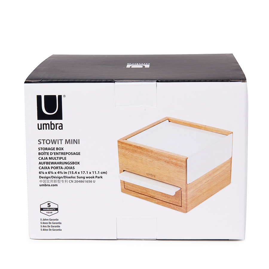 Компактная версия популярной шкатулки для украшений Stowit. Два больших отделения для хранения крупных предметов — колец, браслетов, часов, и один небольшой "потайной" ящичек для запонок, серёжек или цепочек. Типичное сочетание натурального дерева и белого металла делает шкатулку типичным представителем скандинавского модернизма. Дизайн: Sung wook Park