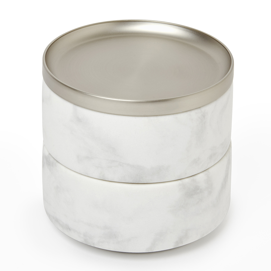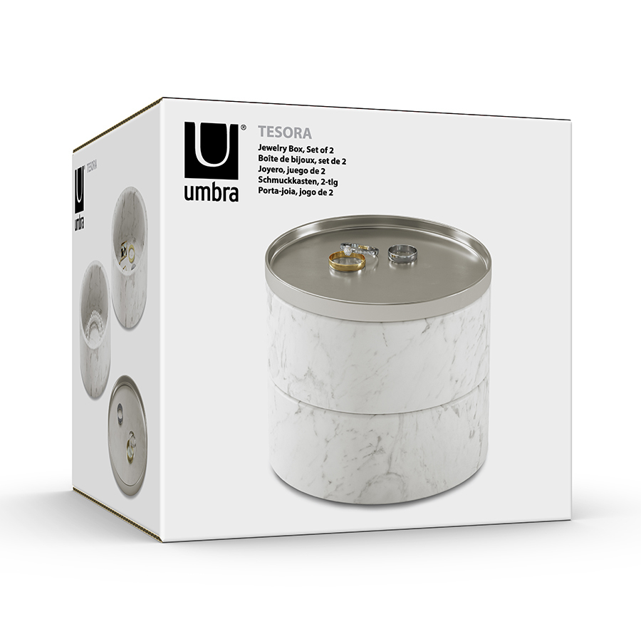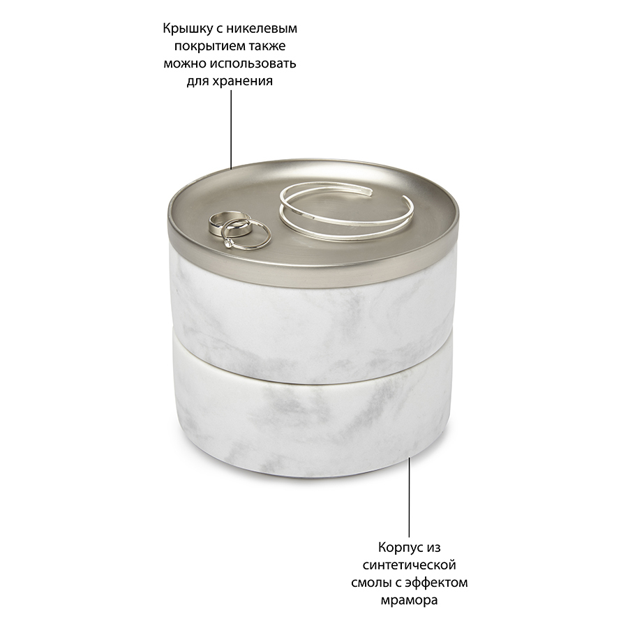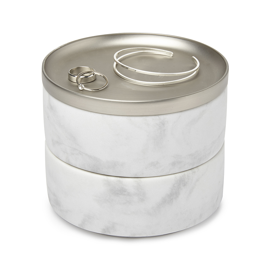 Шкатулка для украшений состоит из двух съёмных отделений. Металлическая крышка закрывает верхнее отделение и служит дополнительным местом для хранения. Отлично подойдет для мелких украшений: колец, браслетов, кулонов, цепочек, брошей, серёг и т.д. Шкатулка отлично гармонирует с держателем Tesora. Этот дуэт позволит удобно и компактно хранить все украшения. Дизайн: Sung Wook Park