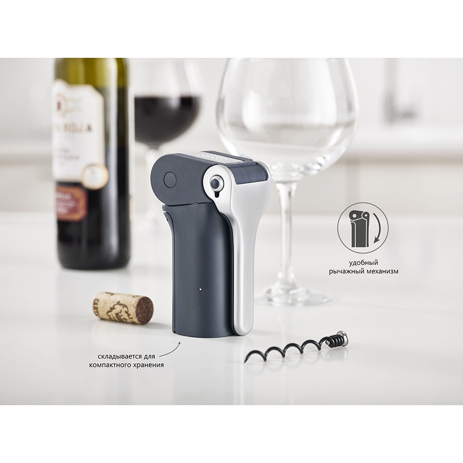 Рычажный штопор BarWise поможет быстро справиться с открытием бутылки вина. Благодаря практичному дизайну и неизменному удобству в использовании девайс станет незаменимой деталью на домашней или профессиональной кухне. Рабочая часть штопора выполнена из качественной нержавеющей стали, которая отличается прочностью и длительным сроком эксплуатации. Для производства корпуса мастера используют экологически безопасный ABS пластик. Этот материал устойчив к образованию царапин и не поддается механическим воздействиям. Штопор компактно складывается для хранения и требует только ручное мытье.