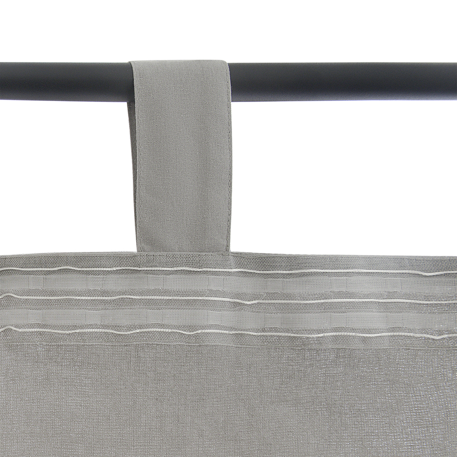 - По верхнему краю шторы предусмотрена лента с петельками для крепления на крючки и текстильные петли, которые позволяют легко разместить ее на карнизе без использования дополнительного крепежа.