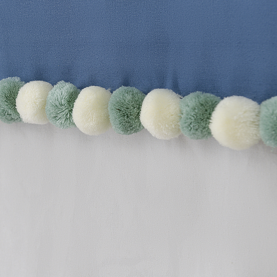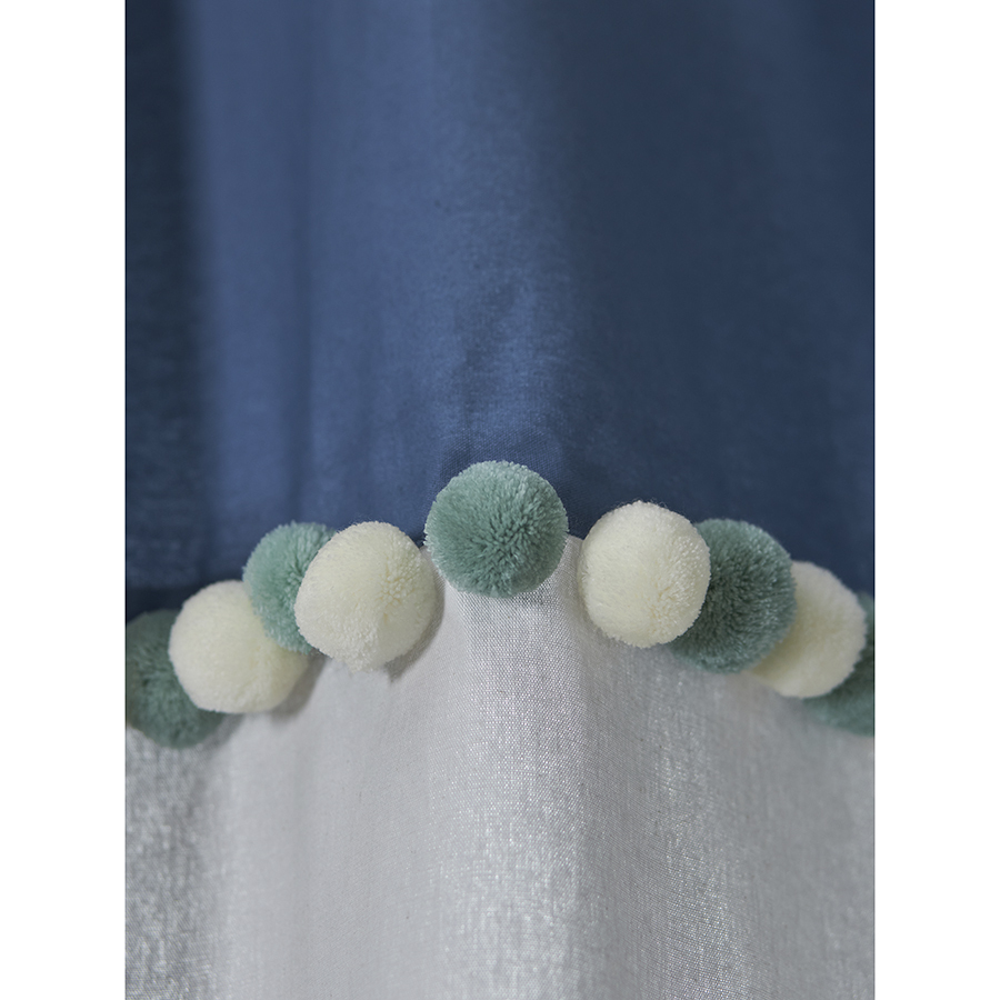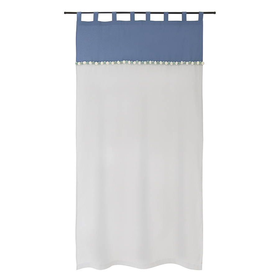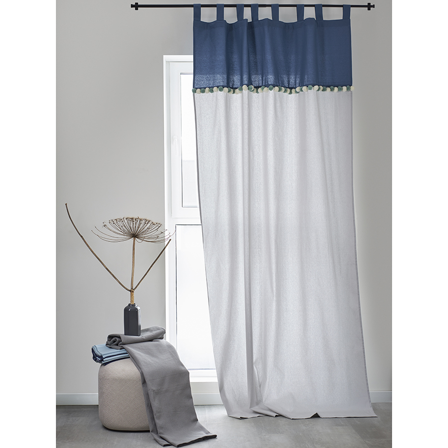 Штора из хлопка с помпонами серо-синего цвета из коллекции Essential поможет выразить собственный стиль в декоре, освежить интерьер и создать в помещении легкую, непринужденную атмосферу.