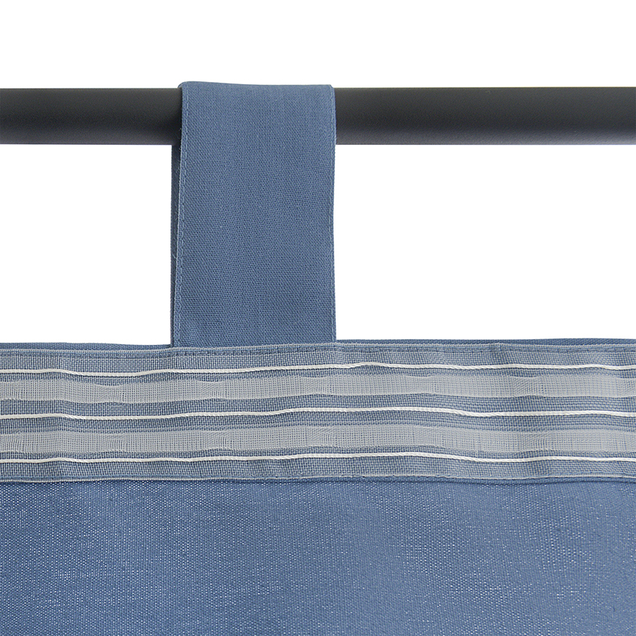 - По верхнему краю шторы предусмотрена лента с петельками для крепления на крючки и текстильные петли, которые позволяют легко разместить ее на карнизе без использования дополнительного крепежа.