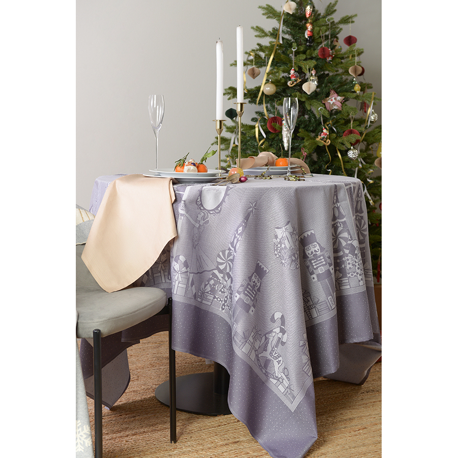 Скатерть из хлопка насыщенного фиолетово-серого цвета с жаккардовым рисунком Щелкунчик из коллекции New Year Essential украсит праздничный новогодний стол и внесет разнообразие в повседневную зимнюю сервировку. Новогодняя сказка, любимая всеми с детства, стилизованная в оригинальном дизайне скатерти, органично впишется в любой современный интерьер. Модель выполнена из плотного хлопка - прочного материала, который хорошо впитывает влагу и не деформируется после множества стирок.