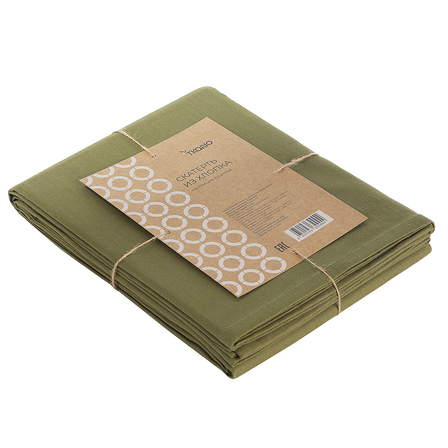 Скатерть из хлопка оливкового цвета из коллекции Essential станет центральным элементом сервировки стола. Модель выполнена из прочного, экологически чистого хлопка. Износостойкий материал не деформируется после множества стирок. Однотонное изделие органично впишется в любой современный стиль.