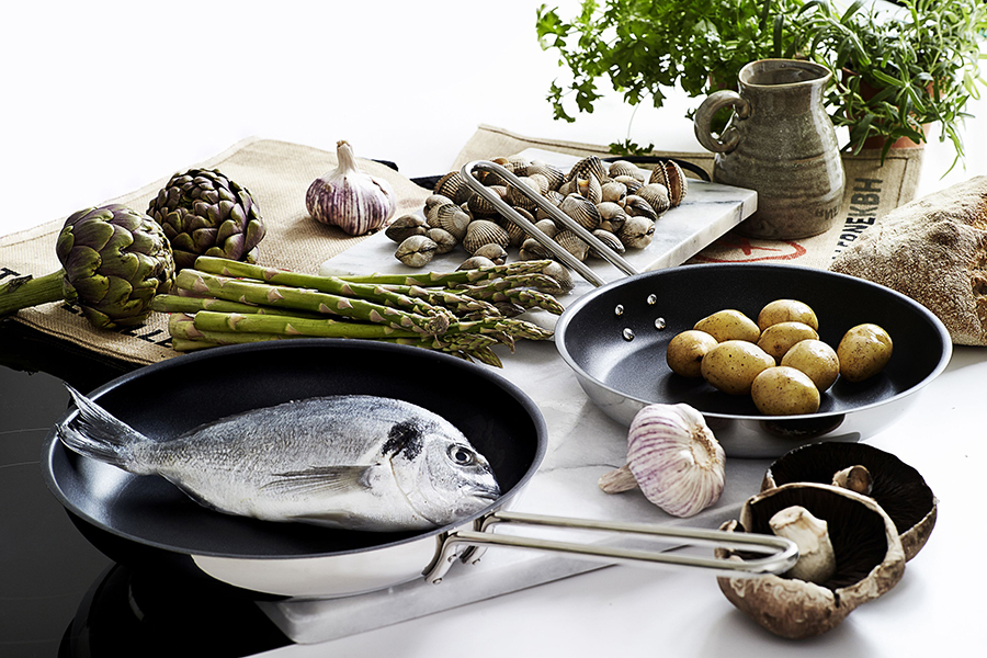 Сковорода Stainless Steel с керамическим покрытием диаметром 30 см станет незаменимым помощником на кухне. Для ее изготовления используется полированная нержавеющая сталь 18/10. Материал делает посуду стойкой к воздействию коррозии, долговечной и практичной в уходе. Керамическое покрытие ILAG Slip-Let® не содержит PFOA и PTFE и по свойствам не уступает антипригарному покрытию. Усовершенствованное тройное дно из нержавеющей стали с толстым алюминиевым ядром быстро и равномерно распределяет тепло. При этом сковорода способна выдержать очень высокие температуры – до 400 °C. Это делает ее идеальной для готовки мяса с аппетитной корочкой. Сковорода подходит для всех типов плит, включая индукционные. Также ее можно использовать для запекания в духовом шкафу. Внешний диаметр дна: 21,5 см Инструкция по уходу и эксплуатации: - Перед использованием удалите этикетки и с помощью жидкости для мытья посуды вымойте сковороду. - Перед каждой готовкой протирайте внутреннюю часть сковороды небольшим количеством растительного масла. Это оптимизирует антипригарные свойства и увеличит срок службы посуды. - Выбирайте варочную панель, которая лучше всего соответствует диаметру сковороды. - Не перегревайте сковороду: при жарке убавьте огонь до среднего, если масло начинает дымить. - Не оставляйте пустую разогретую сковородку на включенной плите. - При использовании сковородок на газовой плите их внешняя поверхность может поменять цвет, но это не ухудшит ее эксплуатационные свойства. - Не добавляйте соль до кипения блюда, так как это может привести к коррозии нержавеющей стали. - Избегайте повреждения покрытия, всегда используйте кухонные принадлежности из силикона, пластика или дерева. - После использования сковороду необходимо мыть вручную, используя жидкость для мытья посуды и мягкую губку. Это поможет сохранить свойства и внешний вид керамического покрытия. - Не используйте для ухода стальные скребки и абразивные средства. - Придать блеск внешней поверхности посуды поможет полироль для нержавеющей стали. - Не храните пищу в сковороде в течение длительного времени, так как это может повредить покрытие.