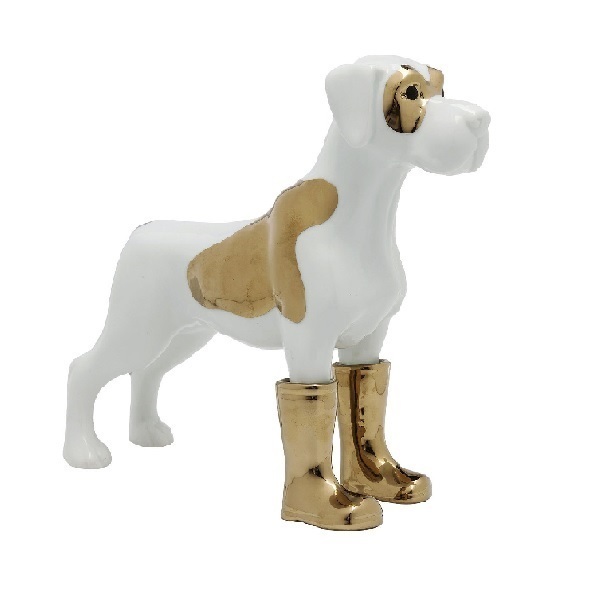 Оригинальная скульптура собаки в сапогах. Ручная работа из фарфора.
