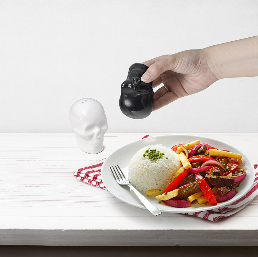 Солонка и перечница Skully испанского бренда Balvi выгодно отличаются оригинальным дизайном. Кухонные аксессуары выполнены в форме черепа: белый - для соли, черный - для перца. Они, бесспорно, привлекут к себе внимание окружающих и подчеркнут вашу креативность. Оба предмета изготовлены из экологичной качественной керамики и отлично ложатся в ладонь, не выскальзывая из нее. Это не только функциональная вещь, но и стильный подарок всем тем, кто выбирает нестандартные решения. • Нестандартный дизайн изделий. • Удобство использования. • Экологичный материал. Материал: керамика. Размеры: 5x5,5x7,5 см.