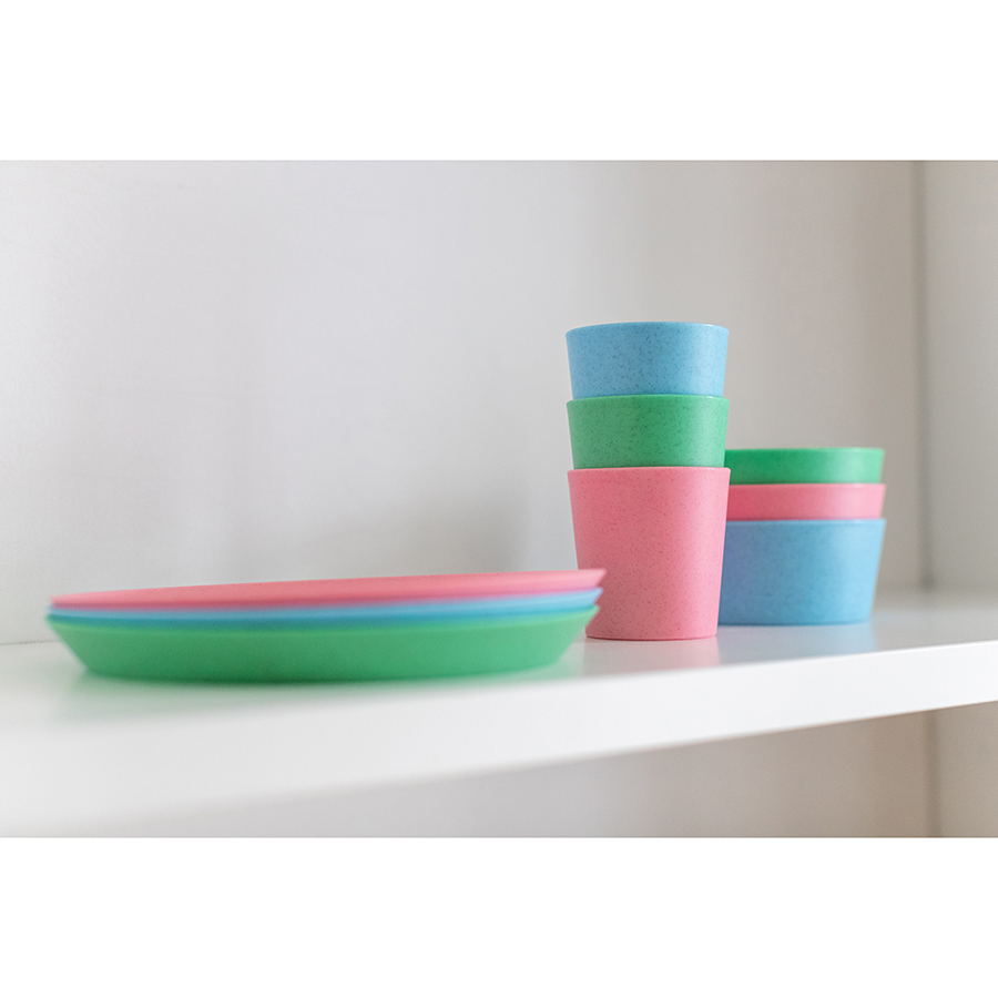 Можно мыть в посудомоечной машине без использования агрессивных средств и нейтрализаторов запаха: они вызывают обесцвечивание пластика. Если размер позволяет, лучше размещать в верхней секции. Даже если пластик помялся в процессе мытья, через время он восстановит форму. Такие продукты, как помидоры, морковь, яйца, шпинат, черника и свекла могут окрашивать воду в посудомойке и вызывать изменение цвета изделия. Чтобы избежать этого, рекомендуется ополаскивать его перед тем, как загружать в посудомойку. Избавиться от пятен можно, подвергнув изделие воздействию света.