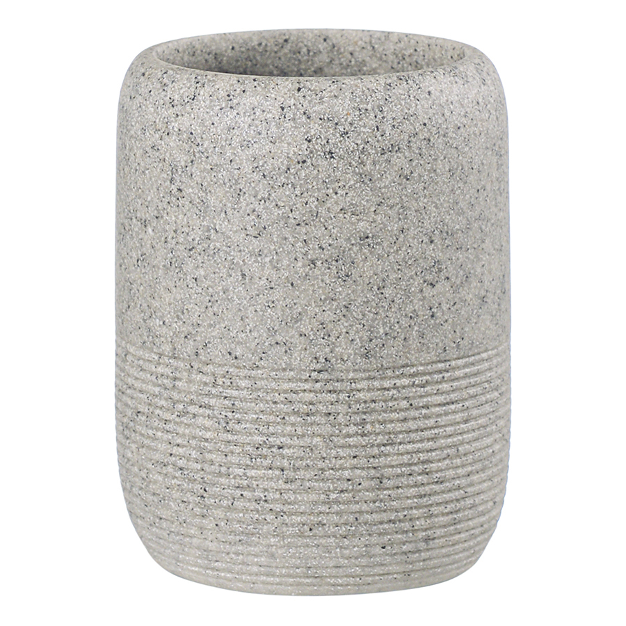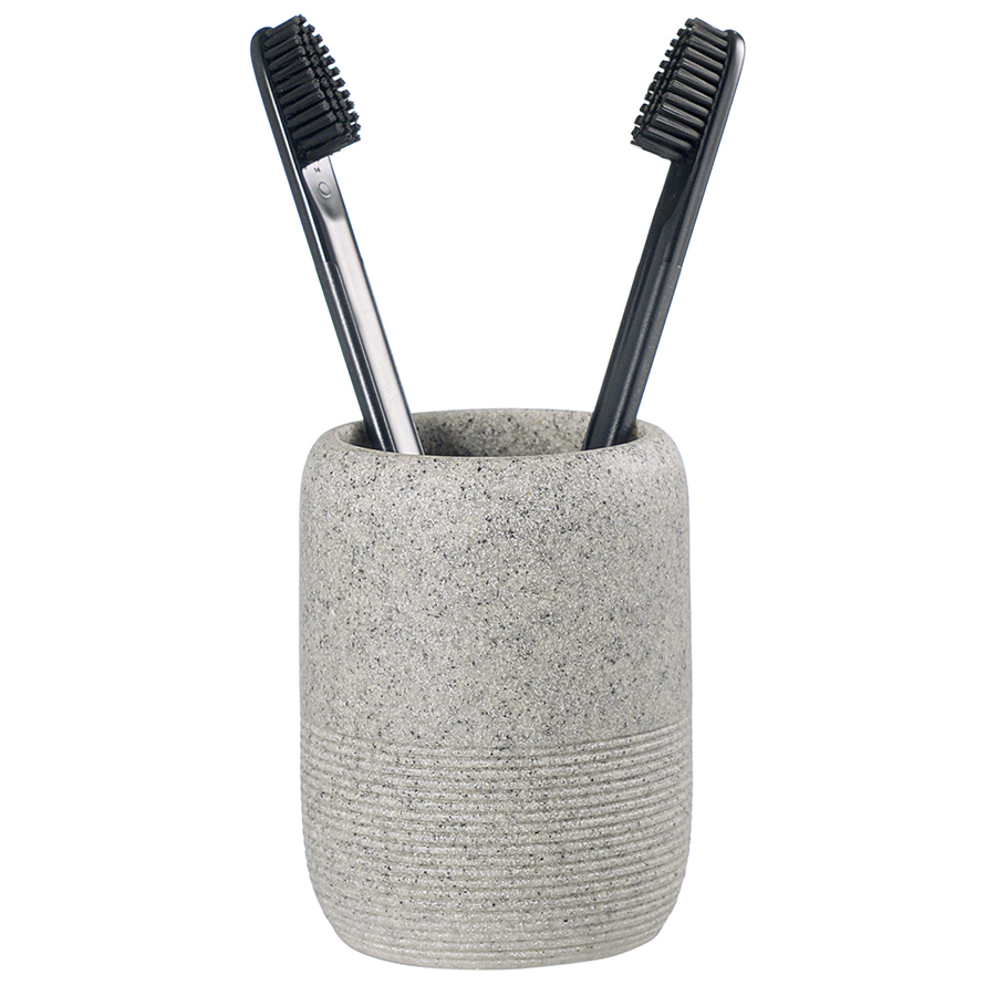 Стакан для зубных щеток Loup имеет корпус из полирезина, стилизованного под натуральный камень темно-серого оттенка. Материал легко моется, отличается устойчивостью к влаге, ударам и царапинам, что делает его идеальным выбором для ванной комнаты. Емкость компактных размеров занимает минимум места на раковине или полке.