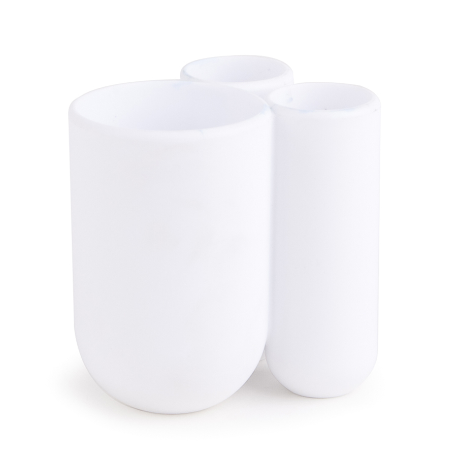 Функциональность подставки для зубных щеток неоспорима - где же еще их хранить. А вот как насчет дизайна? В Umbra уверены: такой простой и ежедневно используемый предмет должен выглядеть лаконично, но необычно. Ведь в небольшой ванной комнате не должно быть ничего вызывающе яркого. Немного экспериментировав с формой, дизайнеры создали подставку Touch, которая придется кстати в любом доме и вместит зубные щетки всех членов семьи и тюбик зубной пасты. Выполнена из приятного на ощупь пластика.