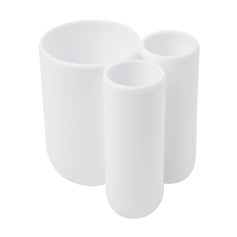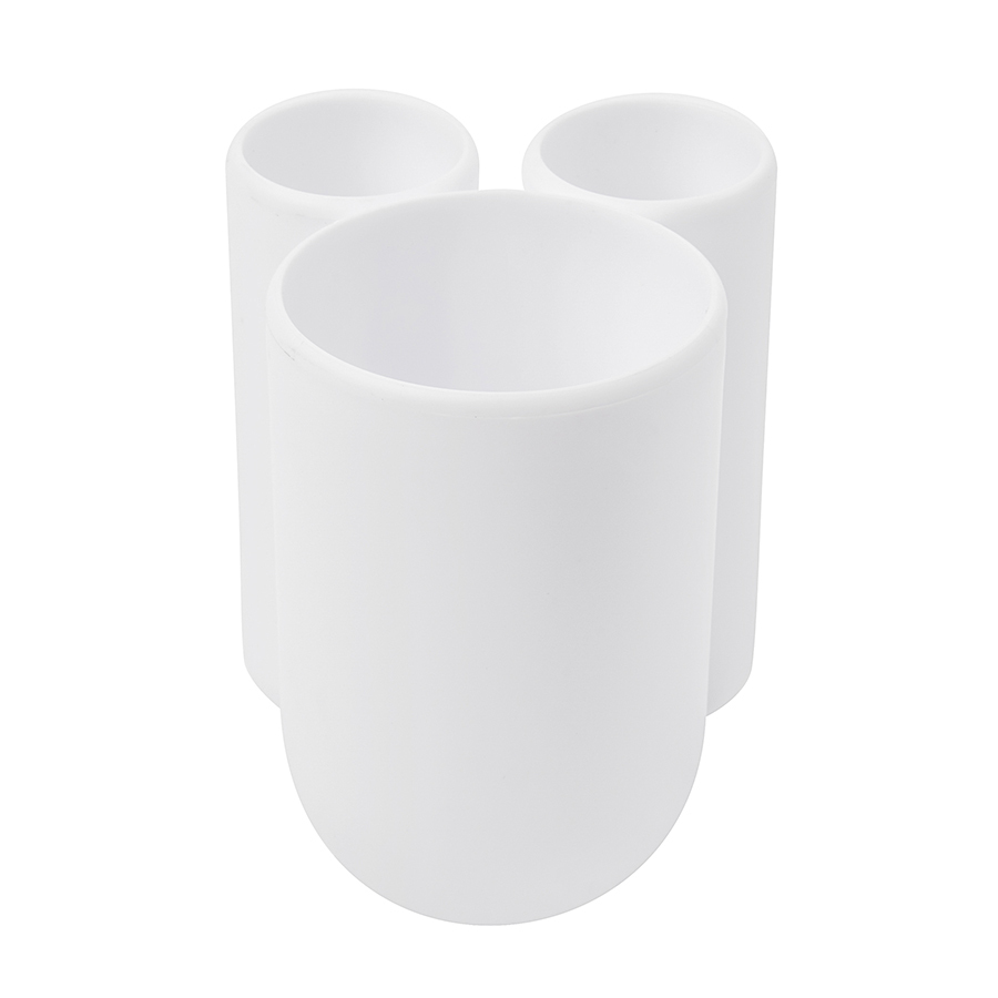 Стакан с тремя секциями вместит зубные щетки всех членов семьи и тюбик зубной пасты. Изделие выполнено из прочного и износостойкого полипропилена.