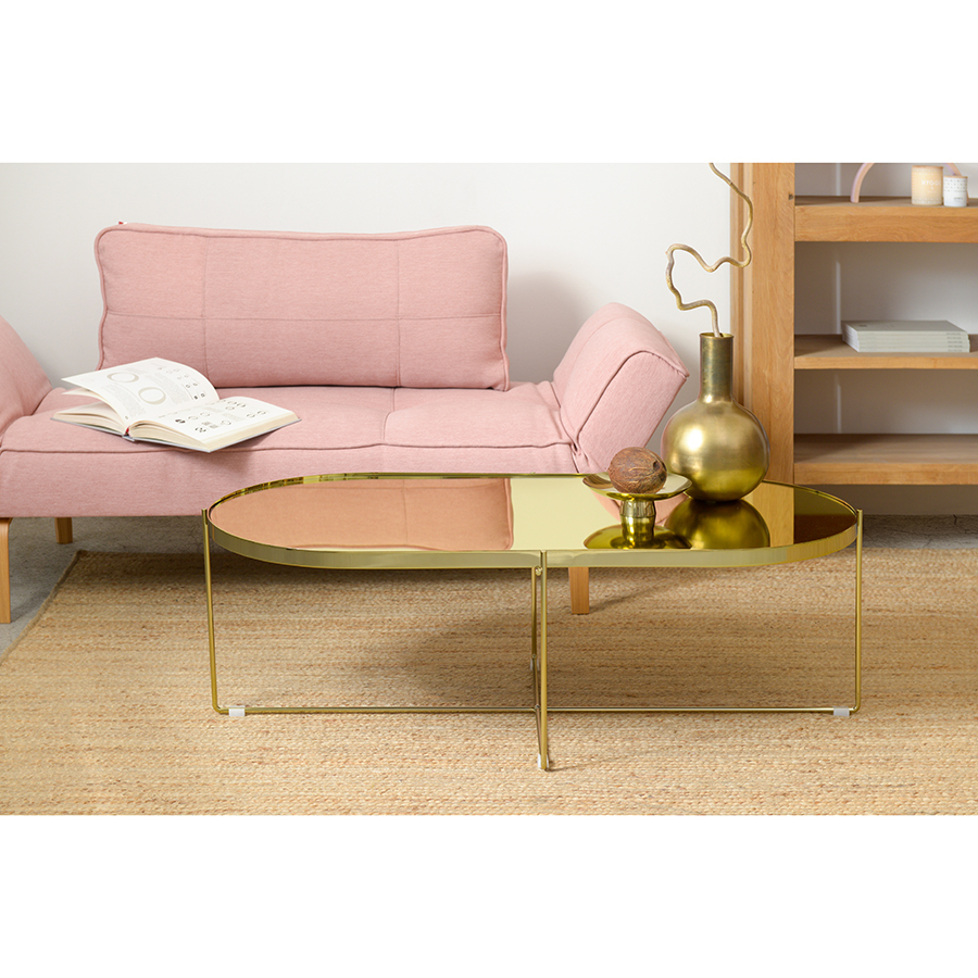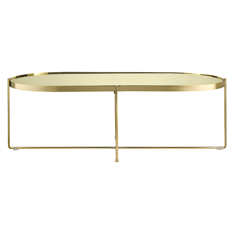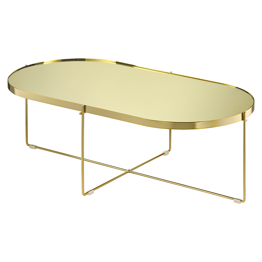 Материалы: столешница – золотое зеркало, каркас – сталь с позолоченным напылением. Размеры: 120х60х38 см.