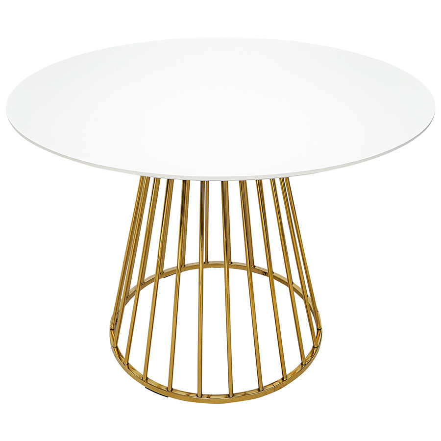 Материалы: сталь, МДФ. Размеры: 110х110х75 см. Диаметр основания: 65 см. Цвет: белый/золотой.