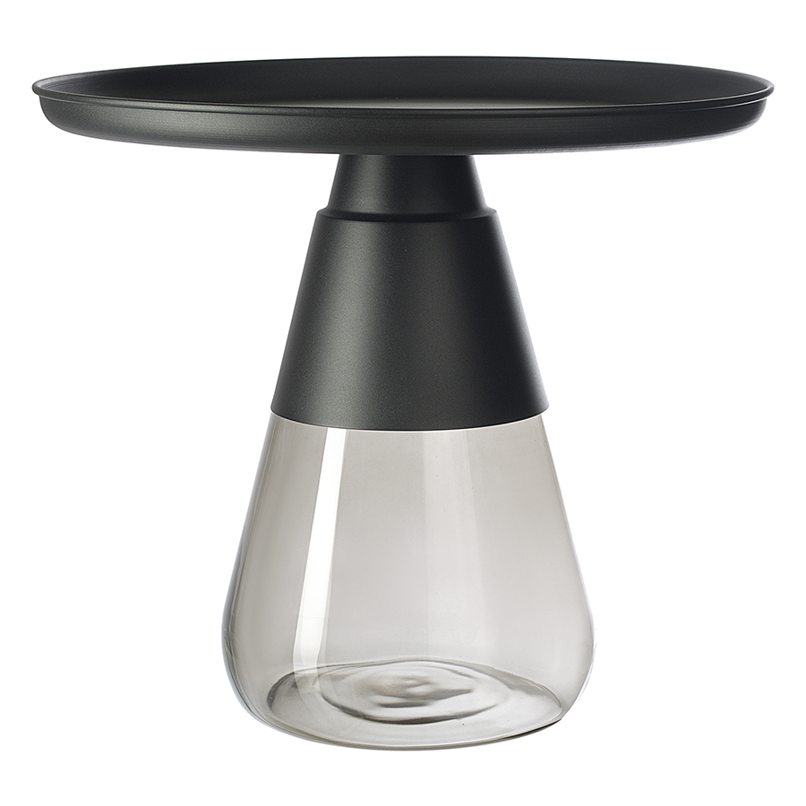 Материал: столешница – сталь, основание – закаленное стекло. Максимальная нагрузка - 10 кг. Диаметр: 60 см. Высота: 52 см. Цвет: черный/серый.