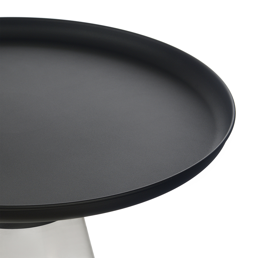 Материал: столешница – сталь, основание – закаленное стекло. Максимальная нагрузка - 10 кг. Диаметр: 70,5 см. Высота: 43 см. Цвет: черный/серый.