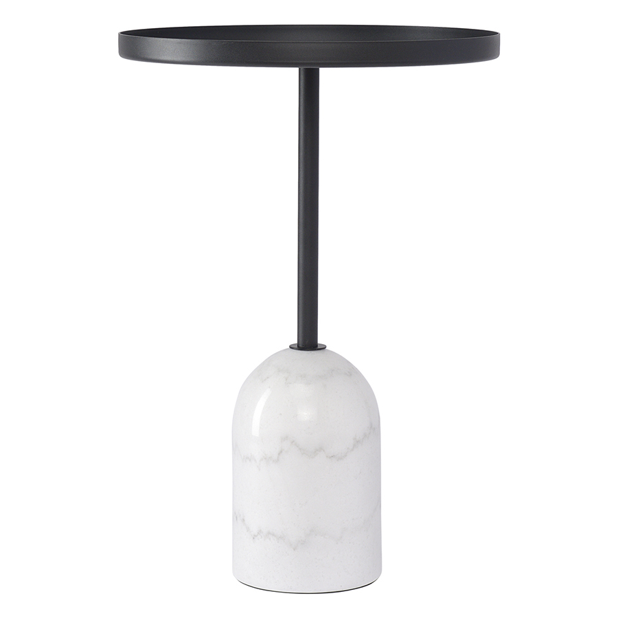 Материалы: столешница и ножка – сталь, основание – мрамор. Максимальная нагрузка - 15 кг. Диаметр: 40 см. Высота: 59 см. Цвет: черный/белый.