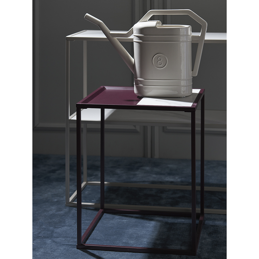 Материалы: столешница – углеродистая сталь, керамика; каркас – сталь с порошковым покрытием. Размеры: 45х45х55 см. Цвет: белый/сливовый.