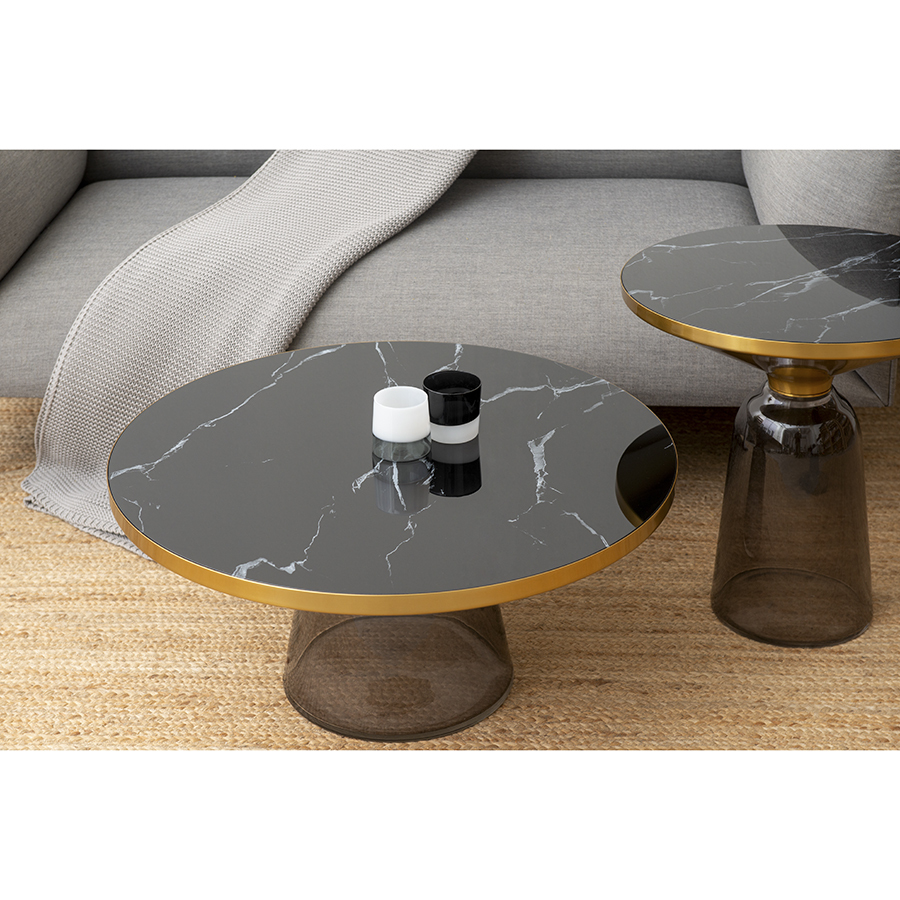 Кофейный столик Odd обращает на себя внимание благодаря необычному дизайну. Изюминкой модели является прозрачное основание из закаленного стекла. Эффектная столешница с мраморным узором придает силуэту нотки изысканности и благородства. Мебель идеально подходит для обустройства интерьера в стиле неоклассика, минимализм, хай-тек и др.