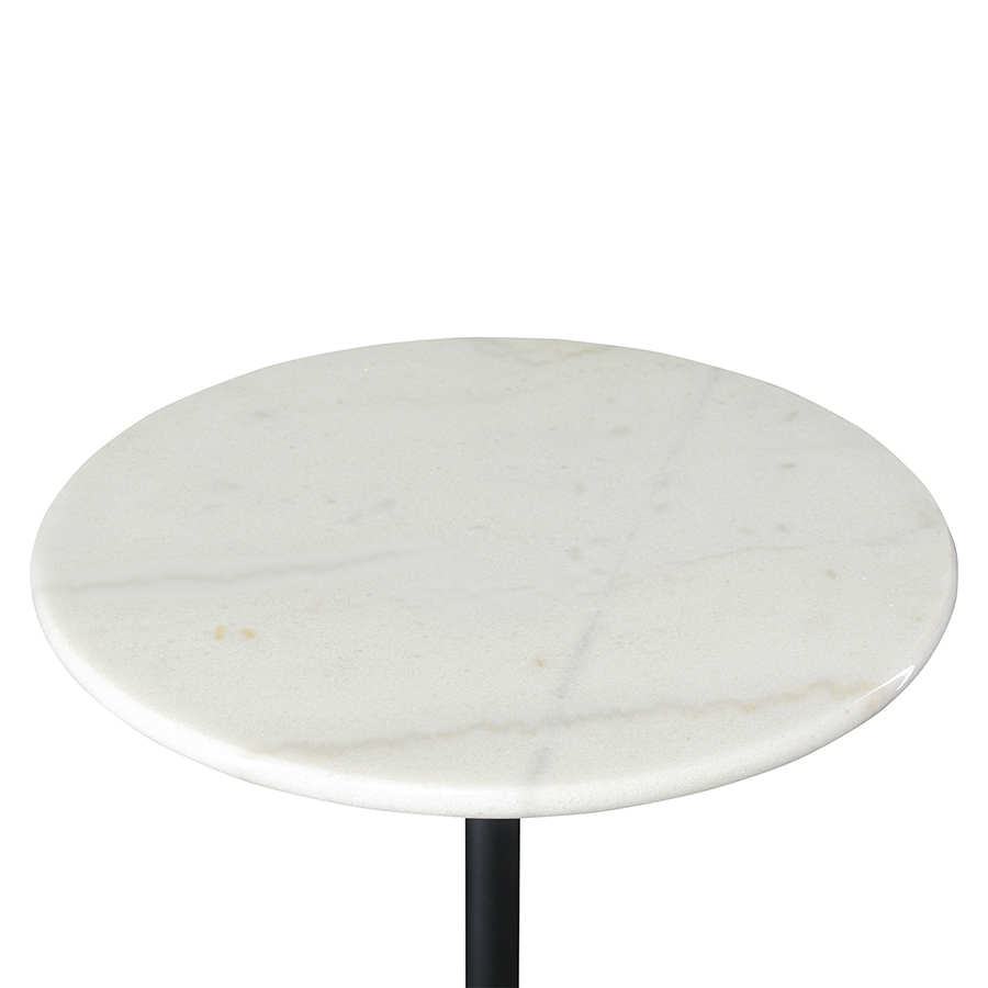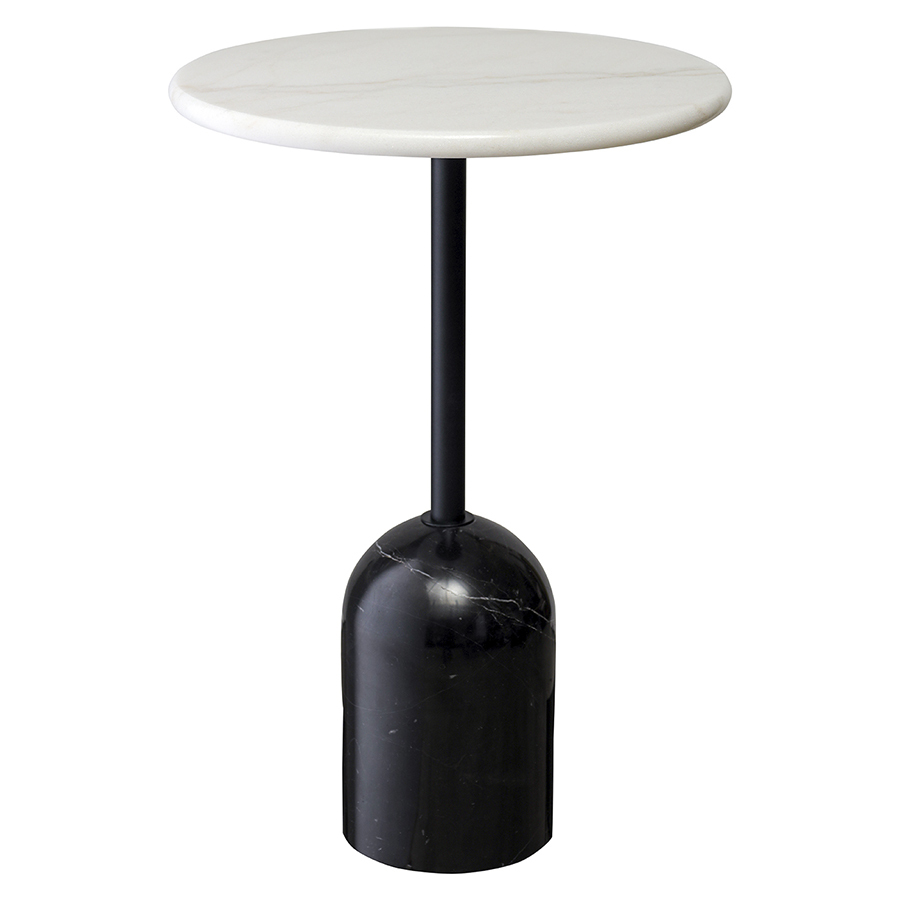 Материалы: столешница и основание – натуральный мрамор, ножка – нержавеющая сталь. Максимальная нагрузка - 15 кг. Диаметр: 40 см. Высота: 59 см. Цвет: белый/черный.
