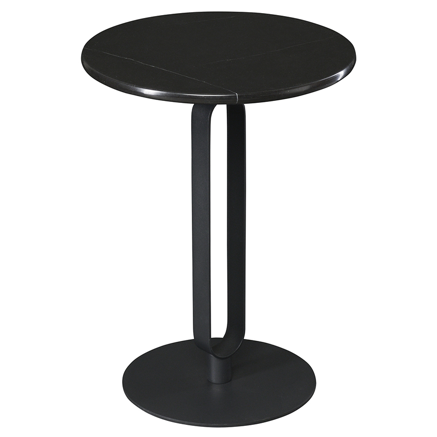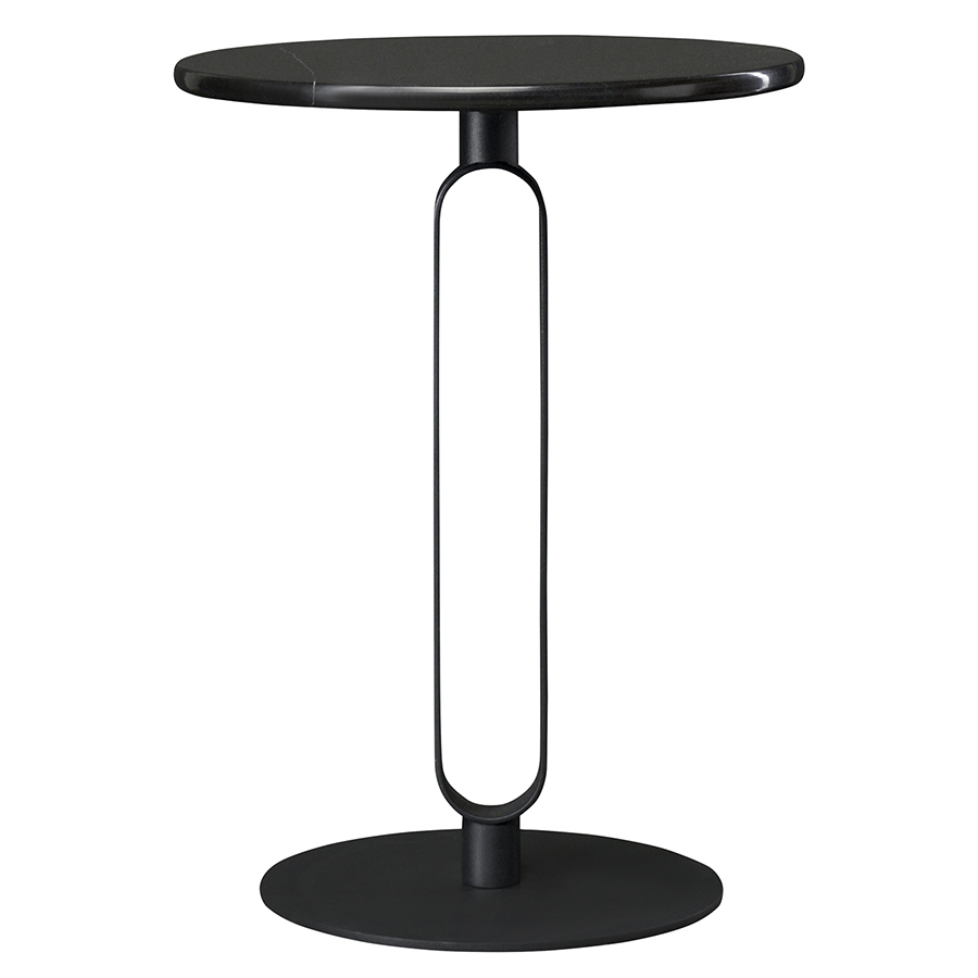 Материалы: столешница – искусственный мрамор, основание – сталь. Максимальная нагрузка - 18 кг. Диаметр: 40 см. Высота: 54 см. Цвет: черный.