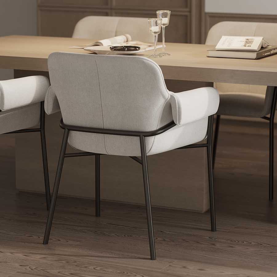 Стул Aline с обивкой из фактурного шенилла выглядит уютно и в то же время благородно. Материал приятный на ощупь и простой в уходе. Комфорт во время отдыха на стуле достигается за счет удобного сиденья с наполнителем из пенополиуретана, высокой наклонной спинки, глубокой посадки и мягких подлокотников. Светлая мебель с лаконичным силуэтом идеально вписывается в интерьер гостиной, рабочего кабинета или спальни, оформленных в скандинавском стиле, лофт, эклектика, фьюжн, неоклассика и др.