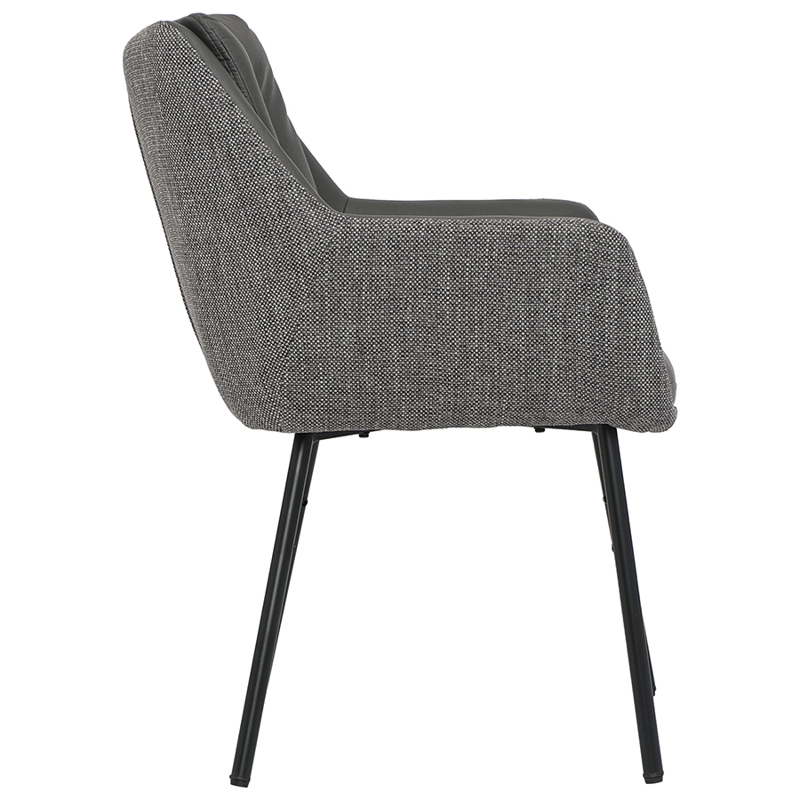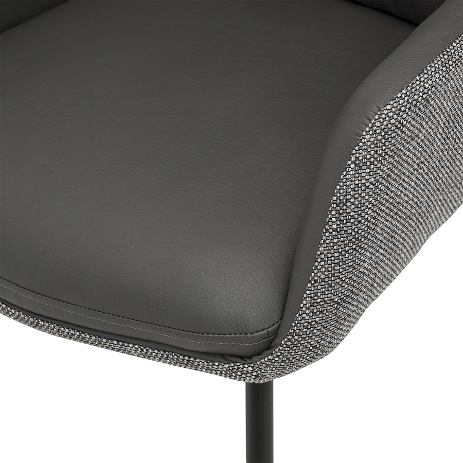 Материалы: 100% полиэстер, полиуретан, фанера, пенополиуретан, сталь. Размеры: 58х52х85 см. Высота сиденья: 47,5 см. Высота подушки сиденья: 10 см. Ширина сиденья: 45 см. Глубина сиденья: 46 см. Высота спинки: 42 см. Ширина спинки: 42 см. Цвет: серый.