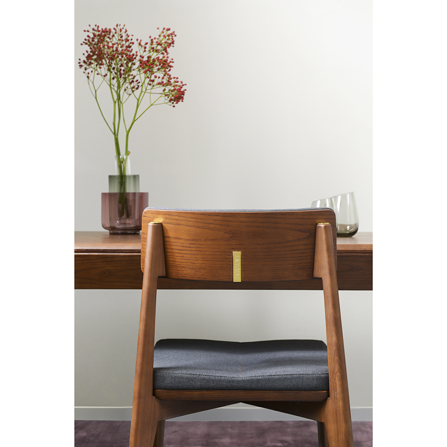 Cтул выполнен из массива ясеня – твердой породы дерева с прекрасной текстурой и отличными эксплуатационными свойствами. Плотность и прочность древесины сравнима с характеристиками дуба, что обеспечивает изделию из данного материала высокую устойчивость к деформации, ударам и долговечную конструкцию. Ткань обивки обладает высокими показателями износостойкости. Используемый в качестве наполнителя сиденья пенополиуретан отличается комфортной жесткостью.