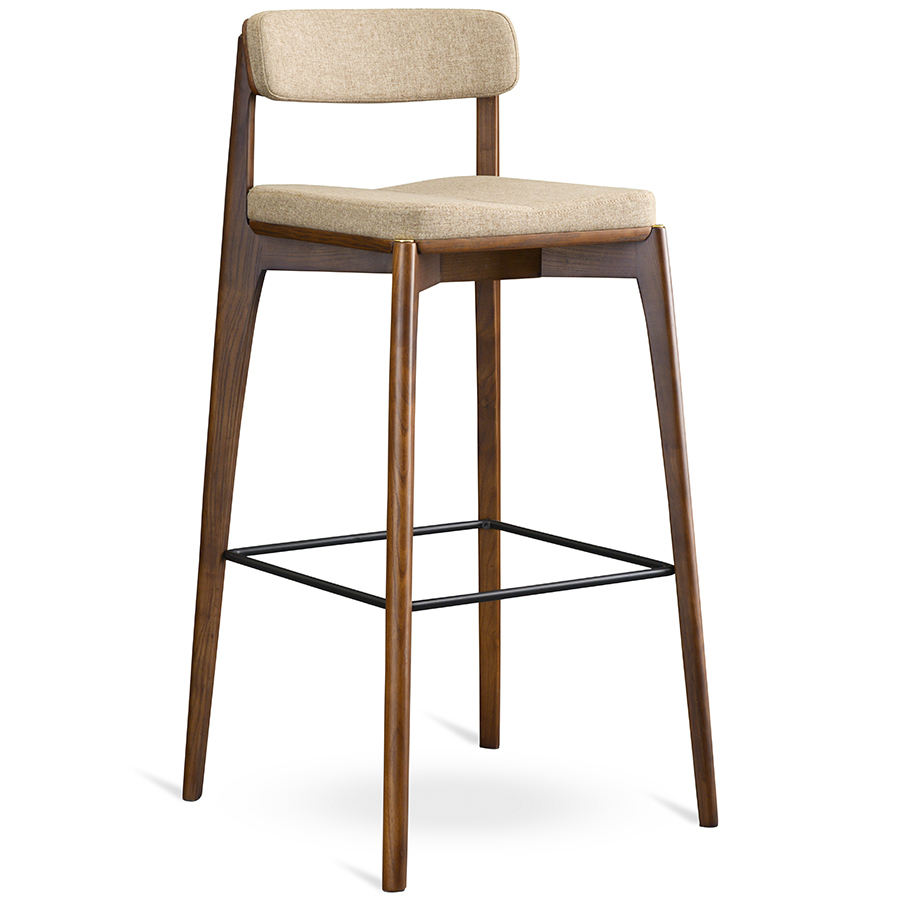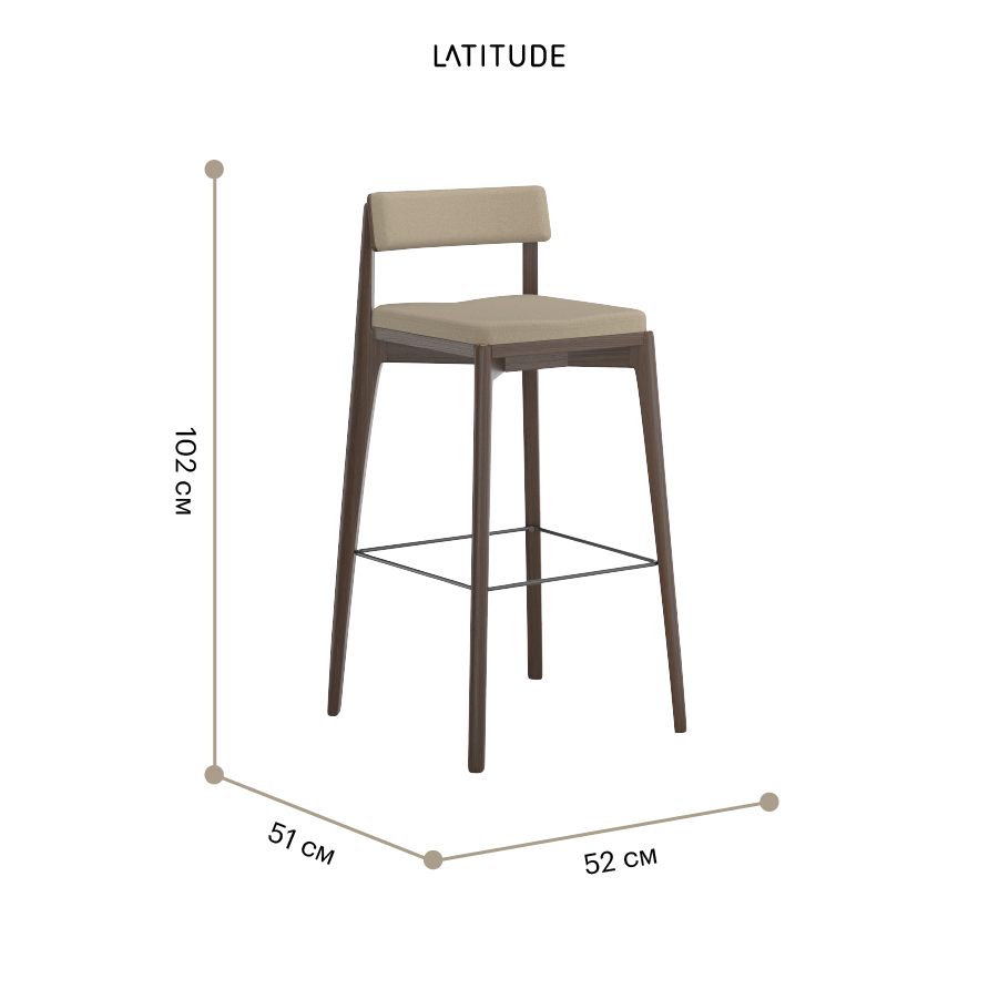 Материалы: массив ясеня, фанера, 100% полиуретан, 100% полиэстер, сталь. Размеры: 51х52х102 см. Высота сиденья: 79 см. Ширина сиденья: 39 см. Глубина сиденья: 37 см. Высота спинки: 24 см. Ширина спинки: 37 см. Высота подножки: 33 см. Максимальная нагрузка: 136 кг. Цвет основания: орех. Цвет обивки: бежевый.