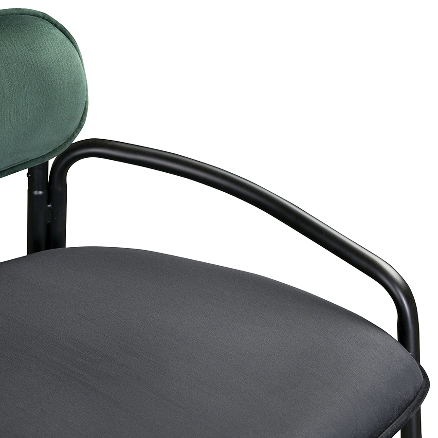 Стальное основание с порошковым покрытием делает конструкцию прочной и надежной, а мягкий велюр с бархатистой текстурой обеспечивает тактильный комфорт. Ткань обивки обладает высокими показателями износостойкости. Используемый в качестве наполнителя пенополиуретан отличается комфортной плотностью и жесткостью.