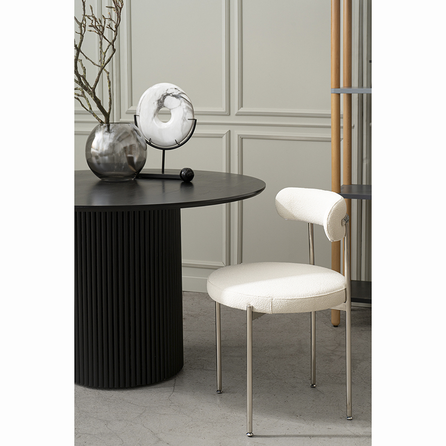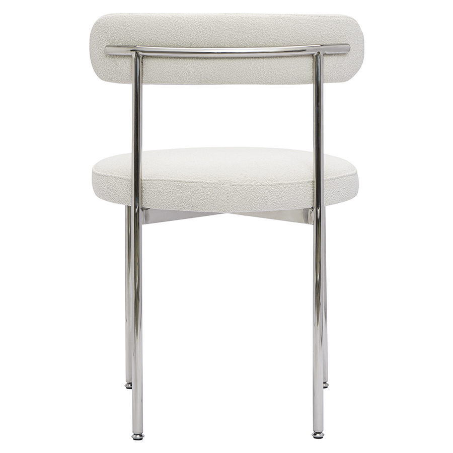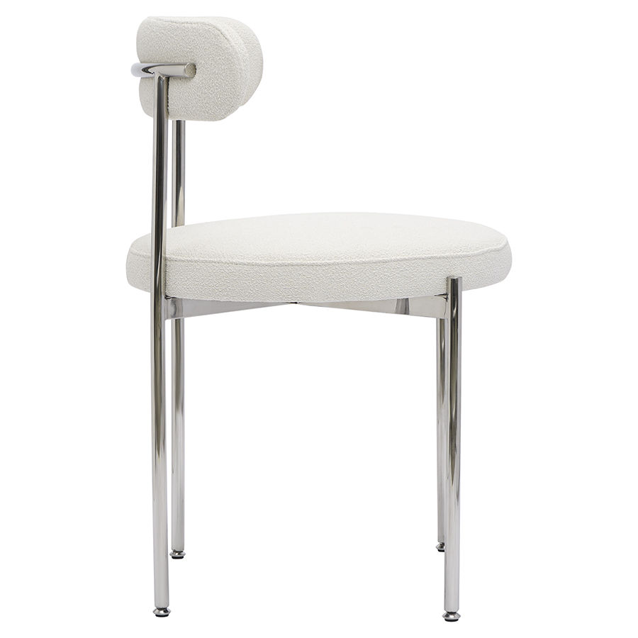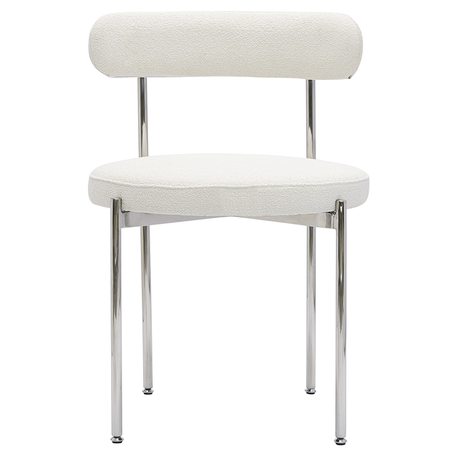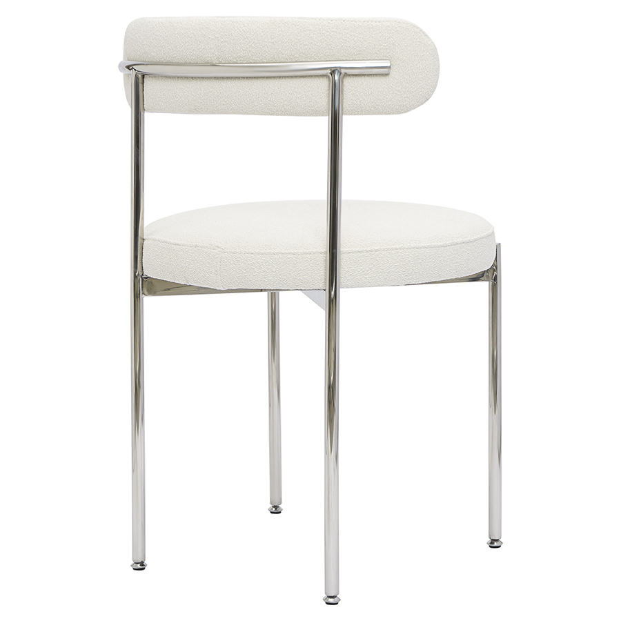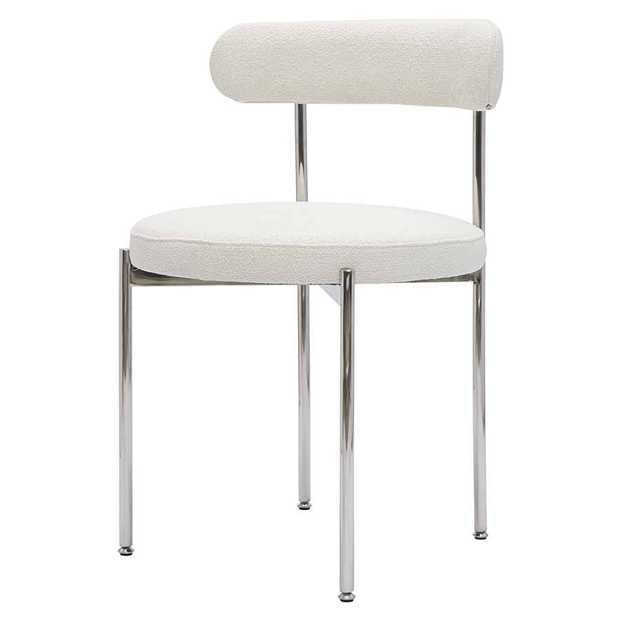 Обивка из буклированной ткани придает мебели изюминку, делая ее уютной и невероятно привлекательной. Мягкий, приятный на ощупь материал дарит тактильный комфорт и позволяет наслаждаться каждым моментом застолья или отдыха. Закругленная спинка обеспечивает качественную поддержку спины. Надежность и долговечность конструкции гарантируют ножки из высокопрочной нержавеющей стали. Стул идеально подходит для обустройства интерьера в стиле прованс, шебби-шик, сканди, лаунж и других.