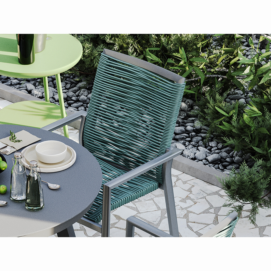 - Спинка и сиденье выполнены из плотной полиэфирной веревки диаметром 6 мм, устойчивой к воздействию влаги, пятнам, плесени и УФ-излучению.