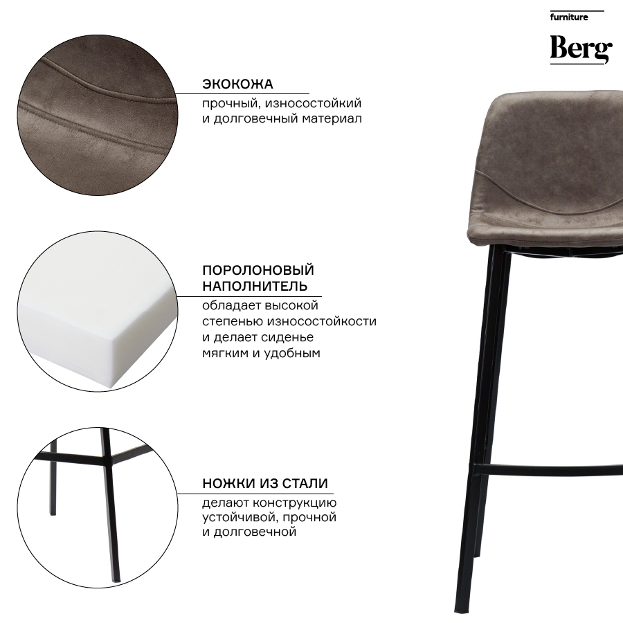 Стул полубарный Hugh с обивкой из экокожи отличается солидным видом и высокими показателями практичности. Этот стильный предмет мебели великолепно впишется в дизайн квартиры-студии, органично дополнит обеденную зону с высоким столом и кухонный остров.