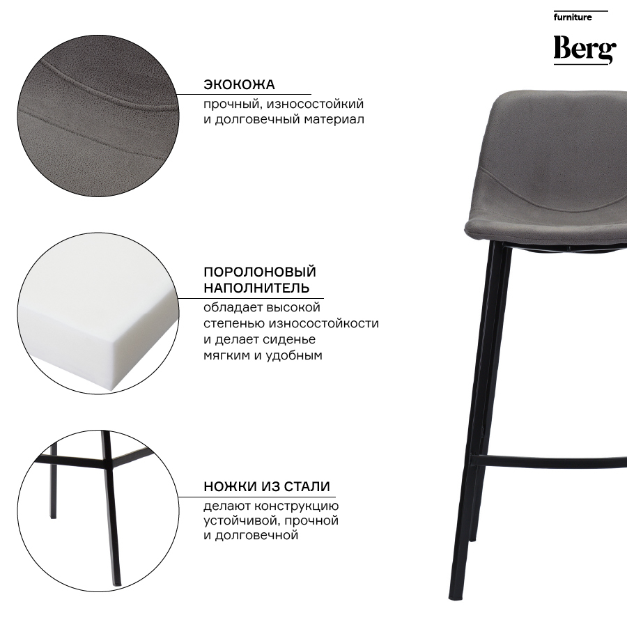 Стул полубарный Hugh с обивкой из экокожи отличается солидным видом и высокими показателями практичности. Этот стильный предмет мебели великолепно впишется в дизайн квартиры-студии, органично дополнит обеденную зону с высоким столом и кухонный остров.